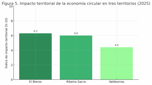 Los datos analizados demuestran que la economía circular no solo es viable en territorios rurales como El Bierzo, Ribeira Sacra o Valdeorras, sino que en algunos casos ya se está consolidando como modelo económico estructural. Sin embargo, su grado de madurez varía significativamente entre zonas, y no siempre depende de factores económicos, sino también de capacidad de organización, gobernanza y visión territorial compartida.