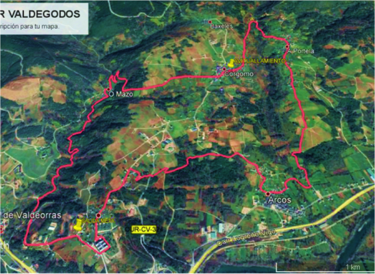 Valdegodos (y pasará entre otros por r Arcos, A Portela, Córgomo y O Mazo), Vilamartín de Valdeorras: