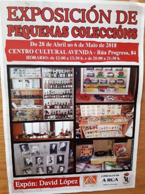 El Centro Cultural Avenida de A Rúa acoge una exposición de “Pequeñas colecciones”, de David López Nogueira, desde el próximo sábado, 28 de abril, hasta el 6 de mayo.