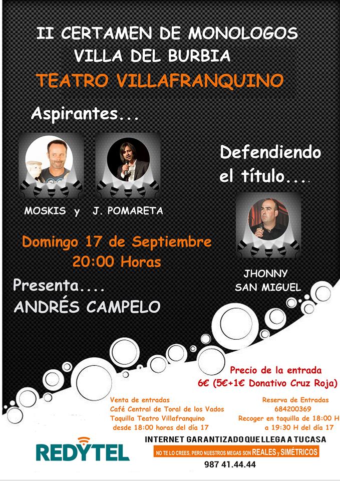 - El próximo día 17 a las 20:00 horas en el teatro Villafranquino se celebra el II Certamen de «Monólogos Villa del Burbia»