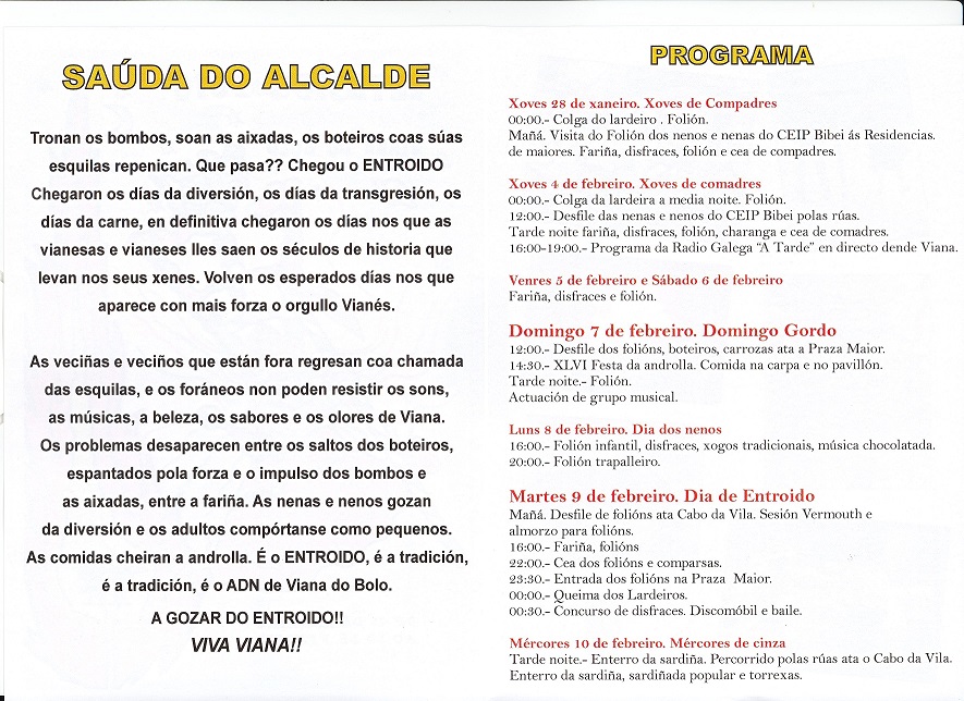 El Entroido en Viana: Lardeiros, boteiros, desfiles de folións, disfraces, harina y androlla