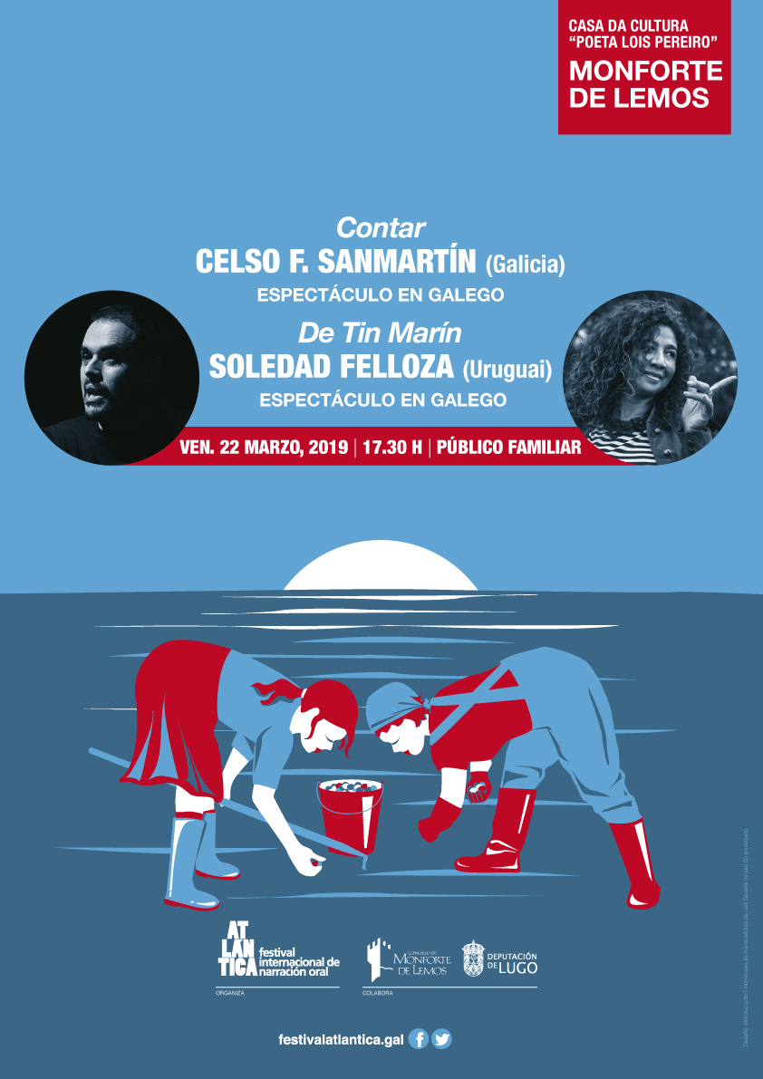 La primera de ellas tendrá lugar a las 17:30 h. y está dirigida a un público familiar e infantil. Contará con 2 actuaciones: la del poeta y cuentacuentos gallego Celso F. Sanmartín, con el espectáculo “Contar” y la de la artista uruguaya Soledad Felloza con “De Tin Marín”.