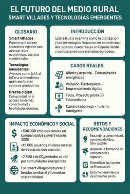 En conclusión, los smart villages y las tecnologías emergentes no representan una utopía futurista, sino una oportunidad tangible y necesaria para que el medio rural europeo y la España Verde se conviertan en territorios resilientes, inclusivos y competitivos a escala global.