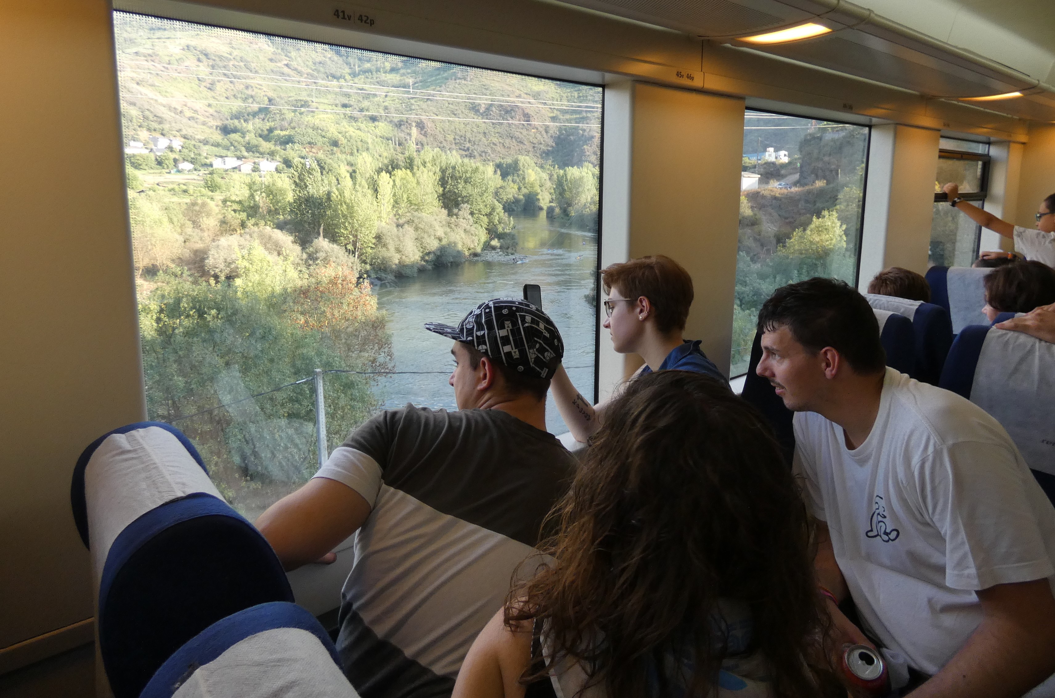 Los momentos mágicos de ir sobre raíles haciendo un seguimiento a la prueba más importante de piragüismo sobre el río Sil se esfumaron. Ni bellas estampas a través de las ventanas (que además hubieran sido imposibles además por el exceso de “aforo”), ni paradas (sólo hubo una) para observar a través del cristal el Descenso. Lo que sí se produjo fue sudor y más sudor, jaquecas, algún amago de golpes de calor en los vagones y el alivio de llegar al fin del viaje en O Barco, punto en el que los viajeros recibieron un soplo de aire fresco (pese a ser la temperatura ambiente de unos 30 grados) al posar el pie en la estación barquense.