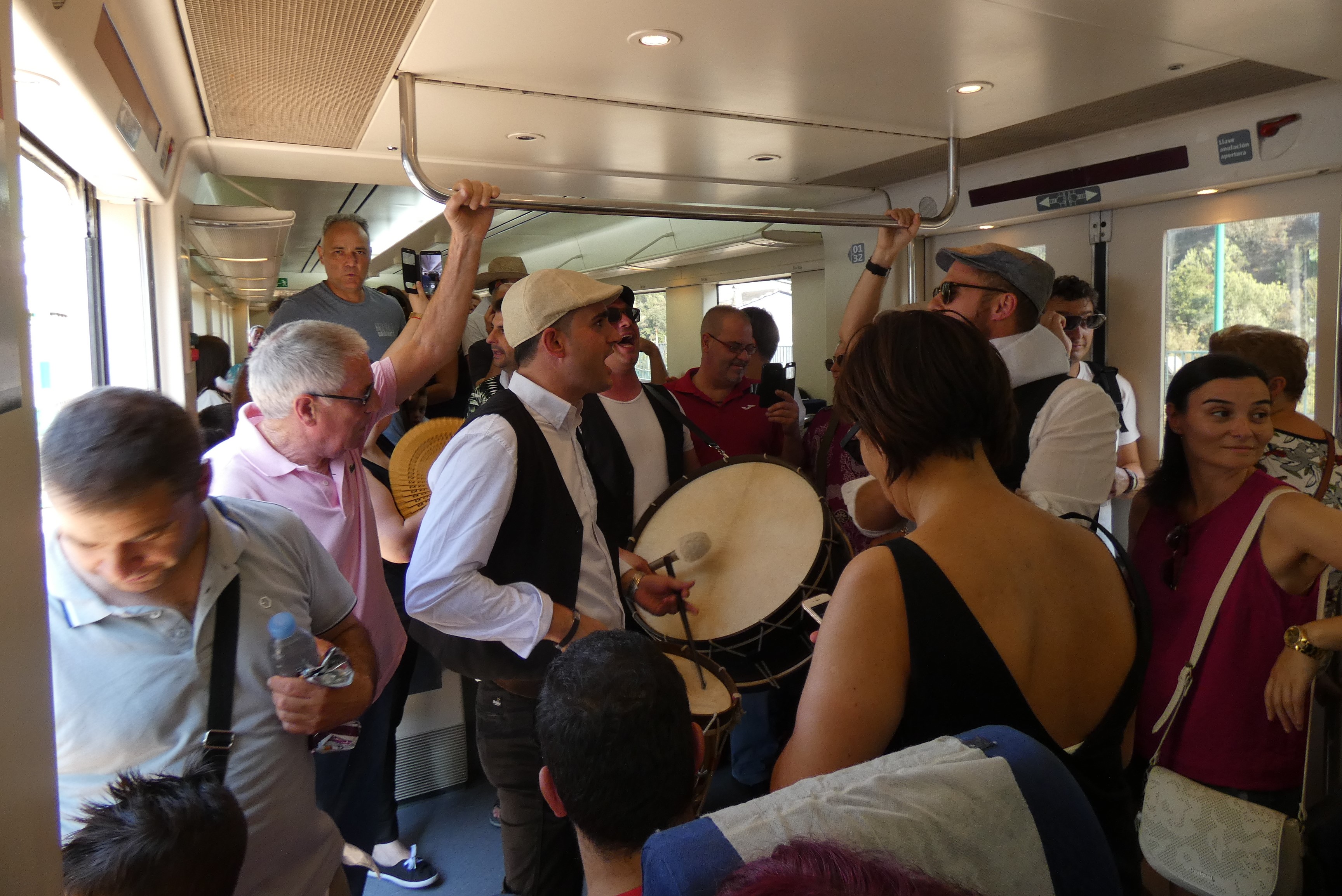 Este inconveniente dificultó incluso el trabajo de animación de la charanga contratada para el recorrido , Pándega, que tuvo que moverse (a la ida y la vuelta) por los vagones sorteando los “empujones” naturales de la falta de espacio.