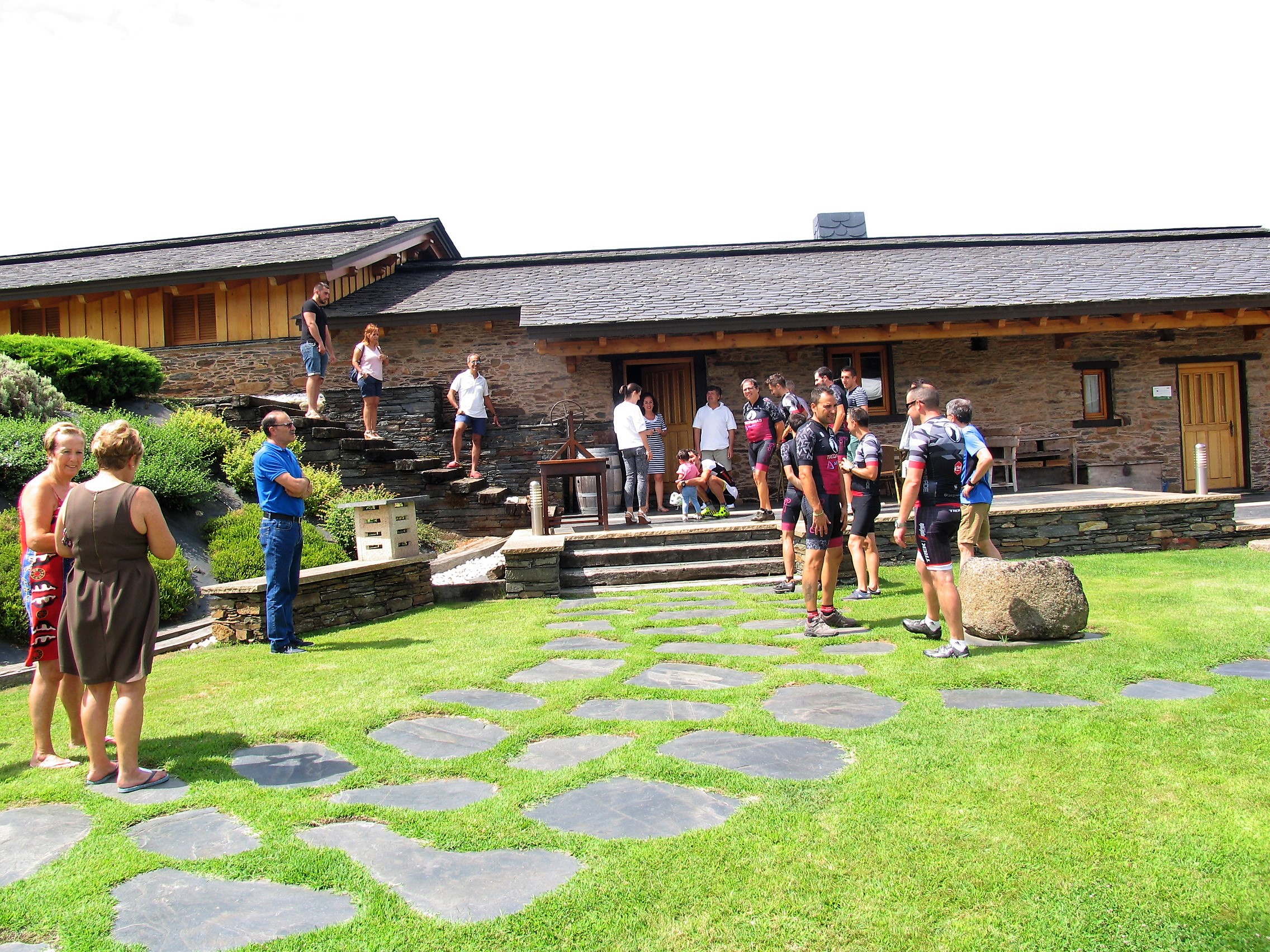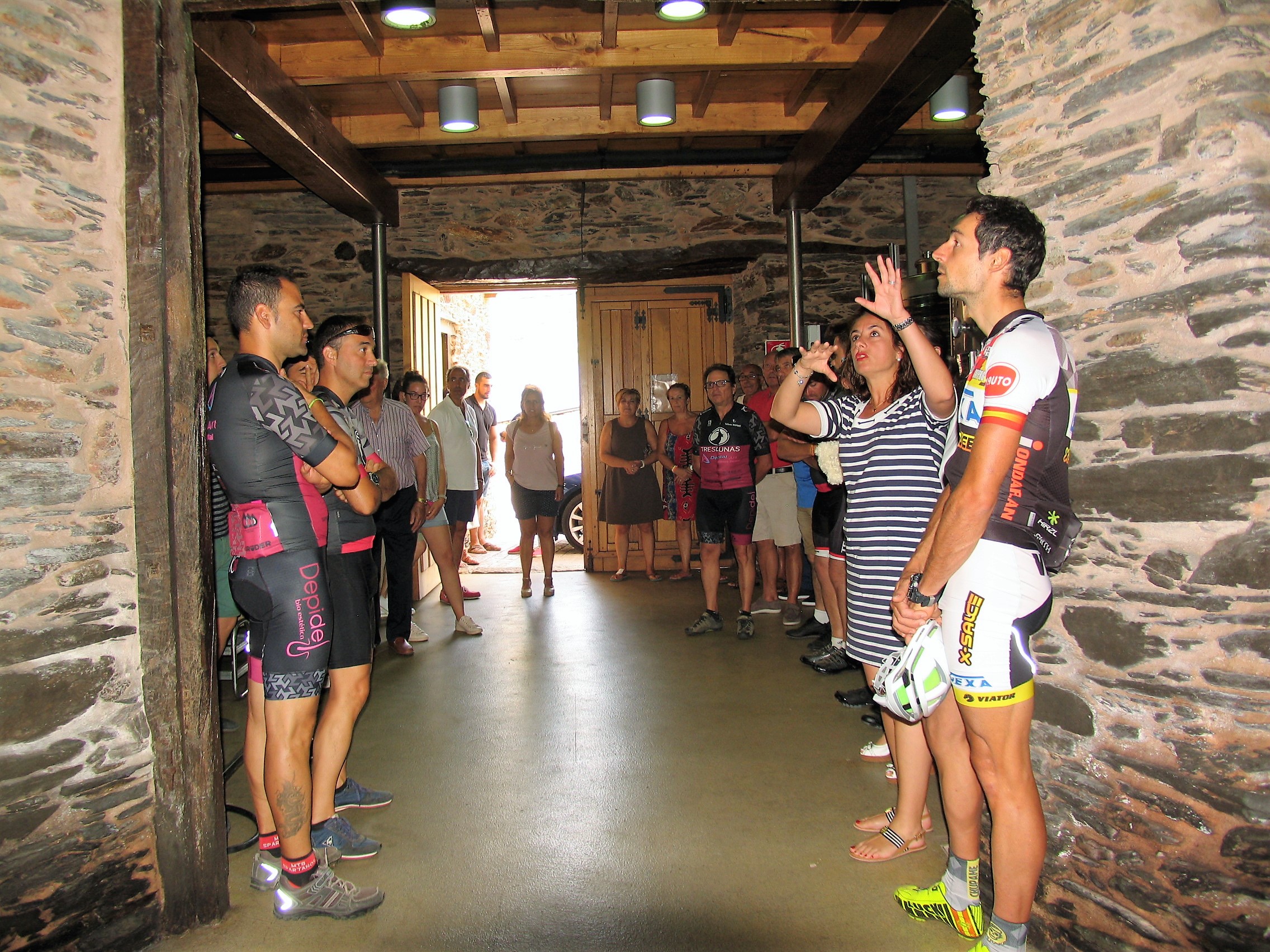 Los organizadores del Tres Lunas Race de Quereño (Rubiá), David Álvarez Núñez y Marcos Alonso Filgueira (de Ferrol), familias y un grupo de participantes y colaboradores, entre ellos el ciclista de A Rúa Pablo Diéguez, visitaron la bodega de vino A Coroa de A Rúa como una de las actividades complementarias del evento.