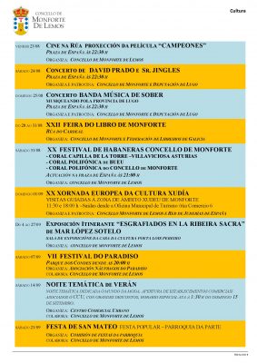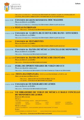 - Conciertos, exposiciones, cine y otras actividades lúdicas forman parte del programa Verano Cultural del Ayuntamiento de Monforte