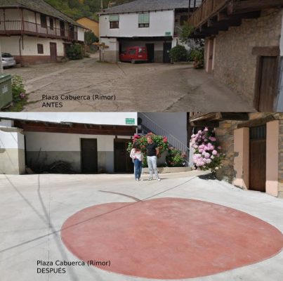 En Rimor se ha realizado una amplia actuación en la Plaza Cabuerca, plaza que se encontraba muy deteriorada tras lustros sin actuar en ella y que sufría un fuerte deterioro, principalmente debido al desgaste por arrastre de piedras que las aguas que provenientes del camino en pendiente que lleva al monte y desemboca en dicha plaza traen en lluvias y tormentas. A su vez, esta actuación, ha permitido canalizar esas aguas que bajan del monte. Seguirán en un futuro actuando en otras zonas de esta localidad que también han sufrido la acción del paso del tiempo y de los elementos en su hormigonado.