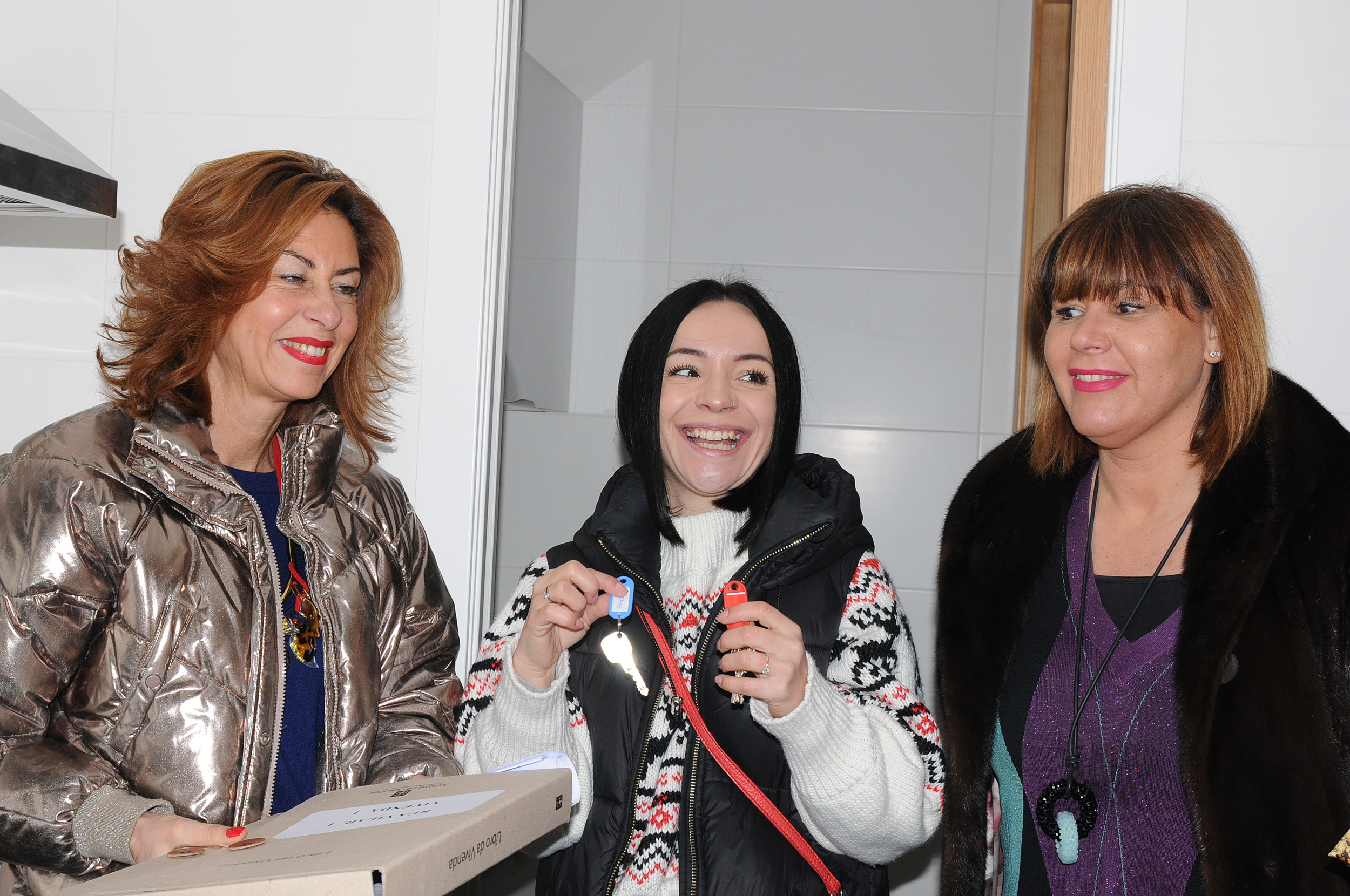 - La delegada territorial, Marisol Díaz Mouteira, hizo entrega de las llaves a los nuevos adjudicatarios que pueden hacer uso de los pisos de inmediato