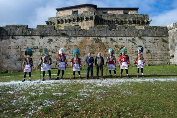 El presidente de la Diputación de Ourense, Manuel Baltar, acompañado por el alcalde de Maceda, Rubén Quintas y por siete » Felos», la figura típica del carnaval de Maceda, presentó en el castillo de Maceda el Programa de carnavales de la provincia de Ourense, el más importante en el ámbito etnográfico, que desarrollará este año, entre los días 8 y 14 de febrero, con más de 260 actividades en 41 localidades de 33 ayuntamientos.