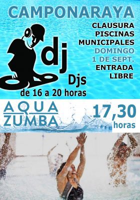 El buen ambiente y la buena música están garantizados con la presencia de DJ’s de 16:00 a 20:00 horas. Además se podrá participar en una sesión de Aqua Zumba a las 17:30 horas. Antes, para las personas que lo deseen, habrá una paellada al precio de cinco euros (5 €). Los tickets para la misma se podrán adquirir en el Bar de las Piscinas.