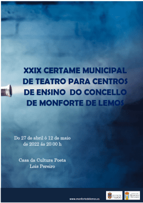 O XXIX Certame Municipal de Teatro para centros de ensino de Monforte, convocado e organizado polo Concello de Monforte, a través da súa Concellería de Cultura, contará coa participación de 6 centros educativos así como unha asociación invitada.