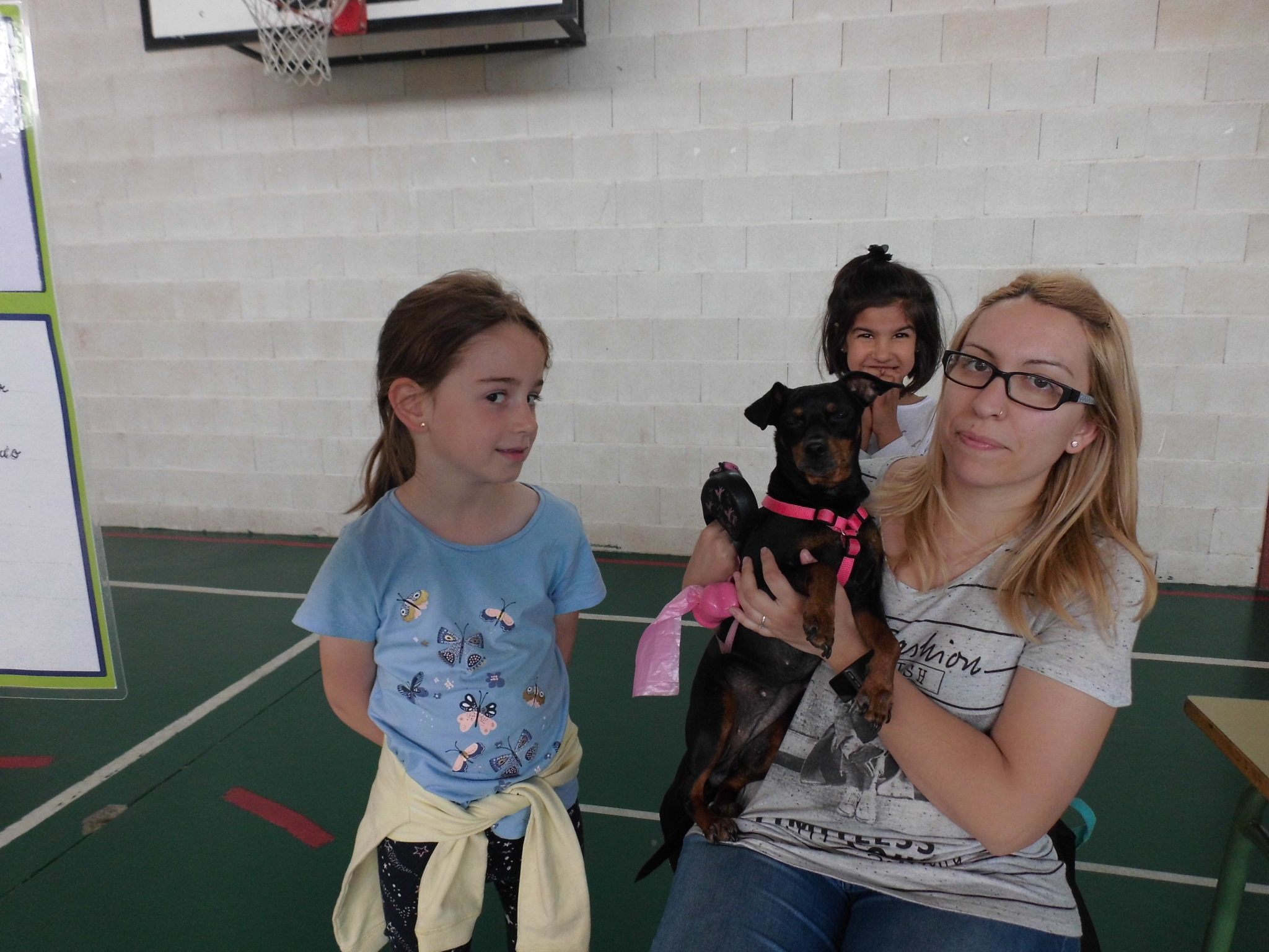 Las familias del alumnado llevaron sus mascotas al colegio, consiguiendo reunir un total de 20. Hubo desde perros y gatos, a conejos, cabras, cobaya, hámster, pájaros, caracoles, tortugas y peces.