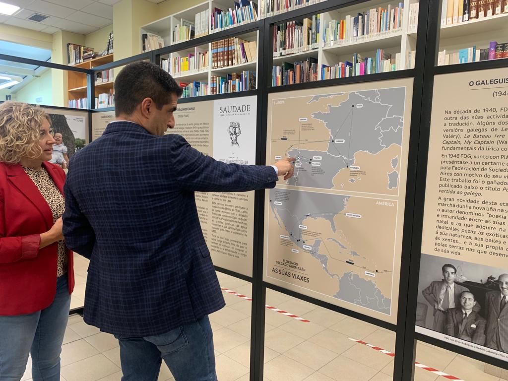 El delegado territorial de la Xunta en Ourense, Gabriel Alén, visitó ayer en O Barco de Valdeorras la muestra itinerante organizada por la Xunta de Galicia Compromiso na distancia, que recorre la vida y figura del homenajeado en las Letras Galegas 2022, Florencio Delgado Gurriarán.