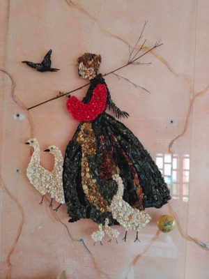 Se trata de una muestra de diferentes trabajos elaborados con materiales naturales como pueden ser piedras, conchas, minerales,…