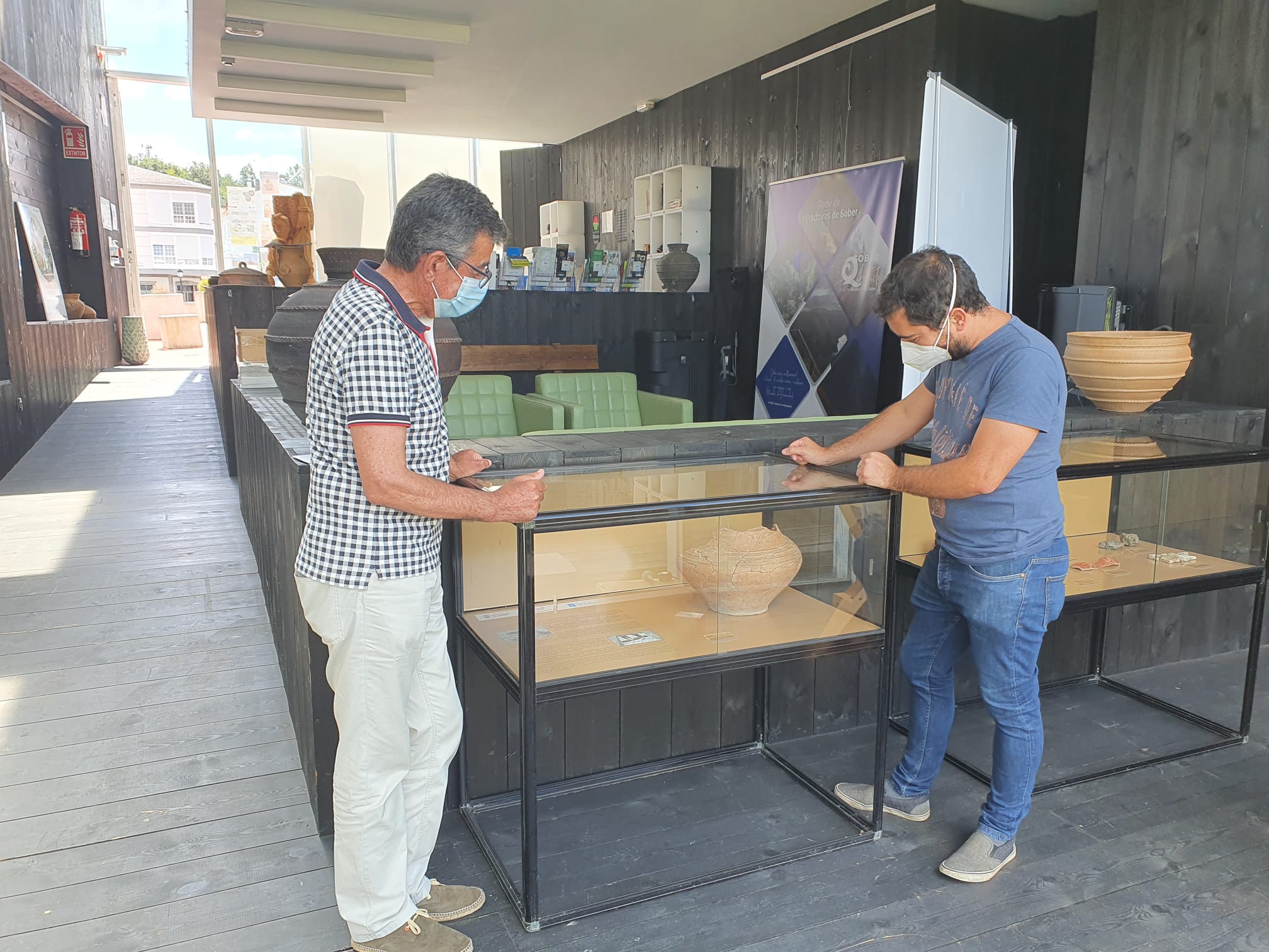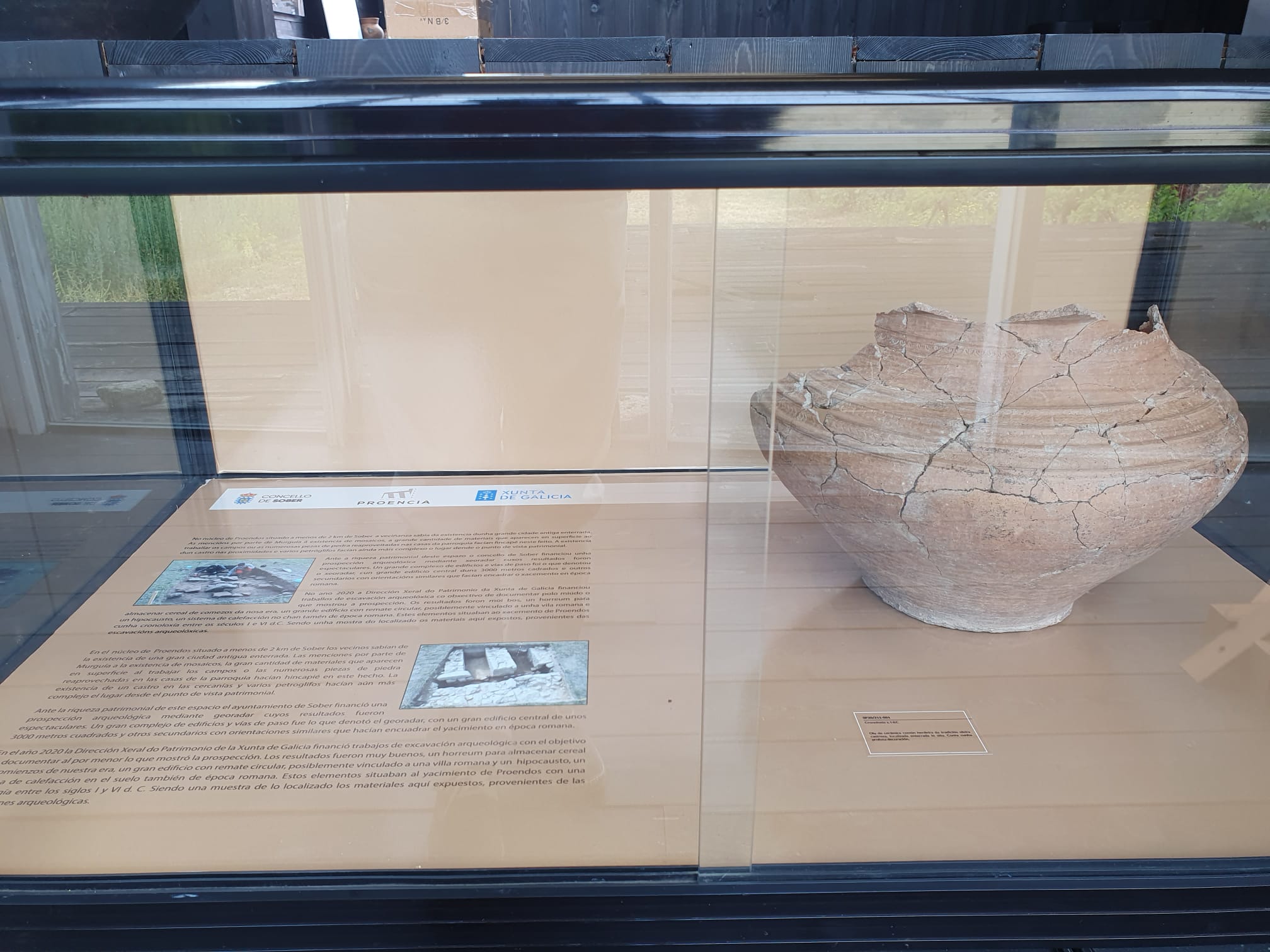 O arqueólogo e director das sondaxes feitas en Proendos, Francisco Alonso Toucido, e o Alcalde de Sober, Luis Fernández Guitián, inauguraron na Oficina Municipal de Turismo a exposición permanente dos materiais atopados nos traballos realizados na antiga Proencia no outono de 2020, cedidos en depósito polo Museo Provincial.