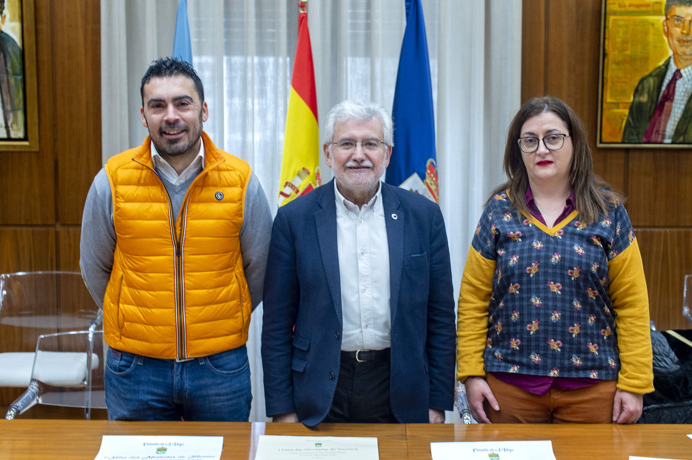 El Ayuntamiento de A Veiga organiza a 1ª Feria de las Montañas de Trevinca, un evento que mostrará los productos de la alta Montaña Gallega los próximos días 14 y 15 de diciembre a través de una programación que incluye showcookings, conferencias, ruta de pinchos, música y la segunda edición del proyecto «Un Nadal enxebre». La presentación de esta iniciativa tuvo lugar hoy en el Pazo Provincial, acto en el que participó el vicepresidente de la Diputación de Ourense, Rosendo Fernández; el alcalde de A Veiga, Juan Anta; y la técnica encargada del centro apícola, Raquel Rodríguez.