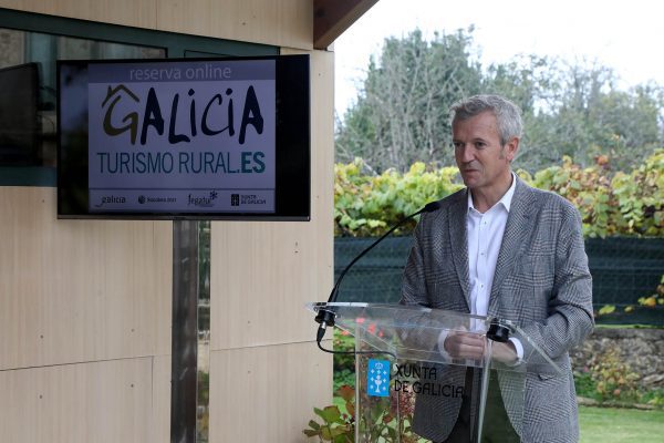 El vicepresidente primero de la Xunta, Alfonso Rueda, participó hoy en A Estrada en la presentación de la plataforma de comercialización de turismo rural galiciaturismorural.es, apoyada por la Xunta. La iniciativa se puso en marcha gracias a un convenio de colaboración entre la Administración autonómica y la Federación Gallega de Turismo Rural (Fegatur).