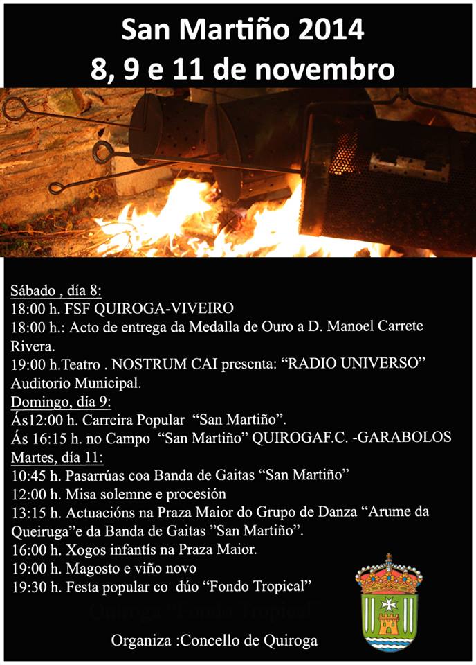 Hoxe, mañá e o martes o San Martiño en QuirogaPor Redacción CTP / 8 noviembre, 2014 Compartir en FacebookCompartir en Twitter