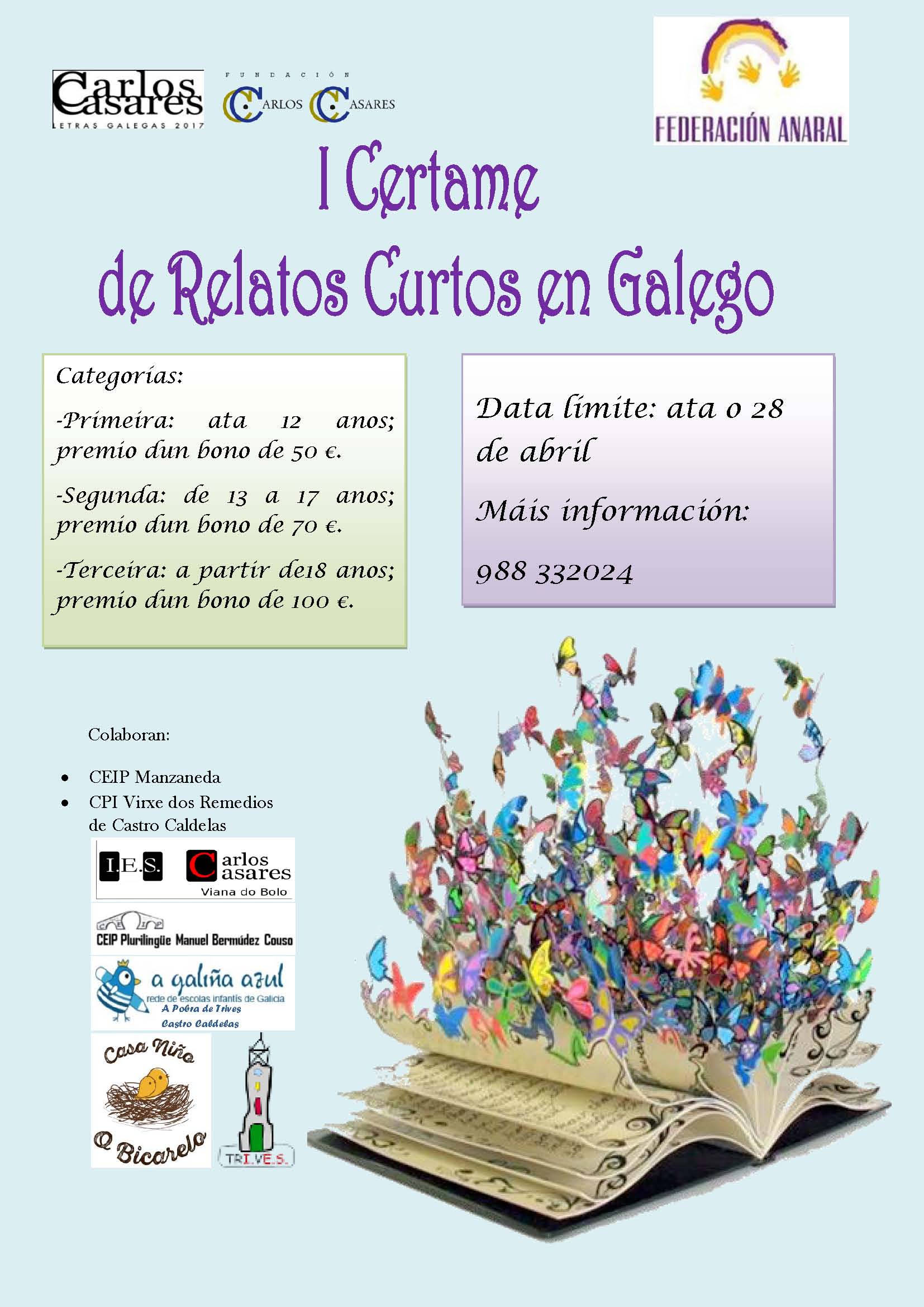Además, se va a celebrar lo la primera edición del I Certamen de Relatos Cortos en Gallego, en el que se valorará la mención a Carlos Casares y a su obra. Existen tres categorías según la edad de los participantes. Las personas interesadas en participar tienen de plazo hasta el 28 de abril para presentar su relato en las sedes de la Federación Anaral, en las Asociaciones que la componen o en los centros educativos que colaboran en este proyecto.