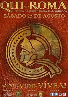 II Festa Castrexa Romana – Qui-Roma que se celebrará el próximo sábado 22 de Agosto en la praza Maior de la localidad de Quiroga. Los asistentes a este evento podrán disfrutar a lo largo de toda la jornada con esta fiesta que dará inicio a las 11.00 horas con la apertura del Mercado Romano. A las 11.15 horas darán comienzo los obradoiros infantiles, dando paso a partir de las 11.30 horas a las actuaciones musicales. A las 12.15 horas tendrá lugar la Mostra Artesanal y a las 14.00 horas tendrá lugar una pulpada.