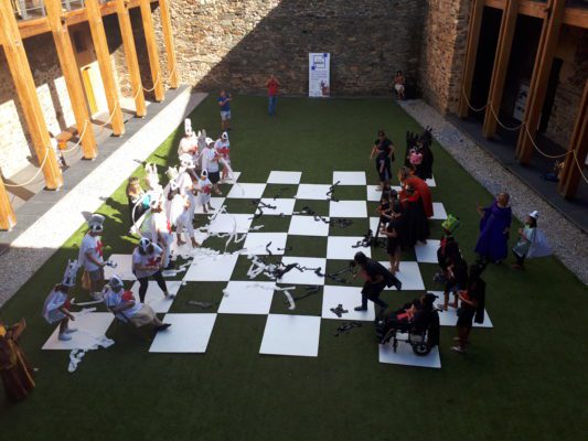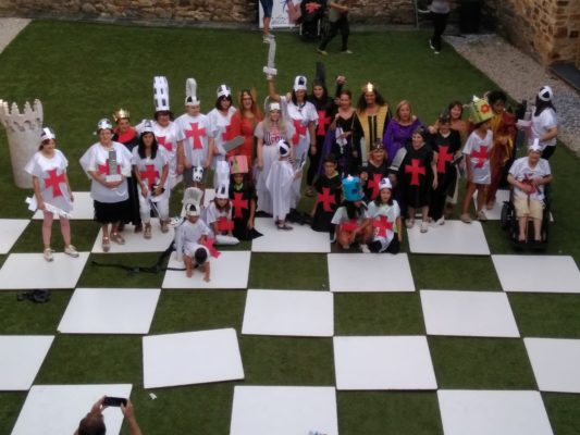Para amenizar la tarde, el Club organizó en el patio interior del castillo un ajedrez viviente, coordinado por Ana Pilar Guzmán, de la Asociación de Enfermos de Alzheimer, que hizo las delicias de grandes y pequeños espectadores, donde se representaba la apertura española y cuya «batalla final» concluía con unas tablas, donde todos ganaban.