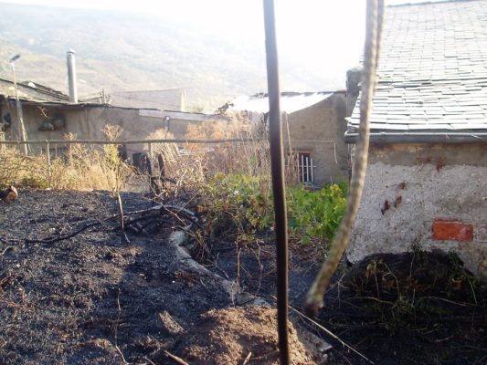 Las llamas alcanzaron dos fincas, calcinándolas por completo, y a punto estuvieron de llegar a otras colindantes y hasta una casa anexa a las mimas.