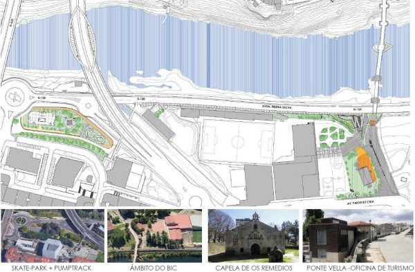 La intervención potenciará, además, las conexiones peatonales desde los distintos puntos de la ciudad hacia este conjunto patrimonial, cuidando el mobiliario y creando un espacio para el ocio, pensado para el disfrute de vecinos y turistas. También se habilitará un mirador, como nuevo atractivo turístico de la ciudad, desde el que poder observar el río Miño, el Puente Viejo y la Capilla dos Remedios.