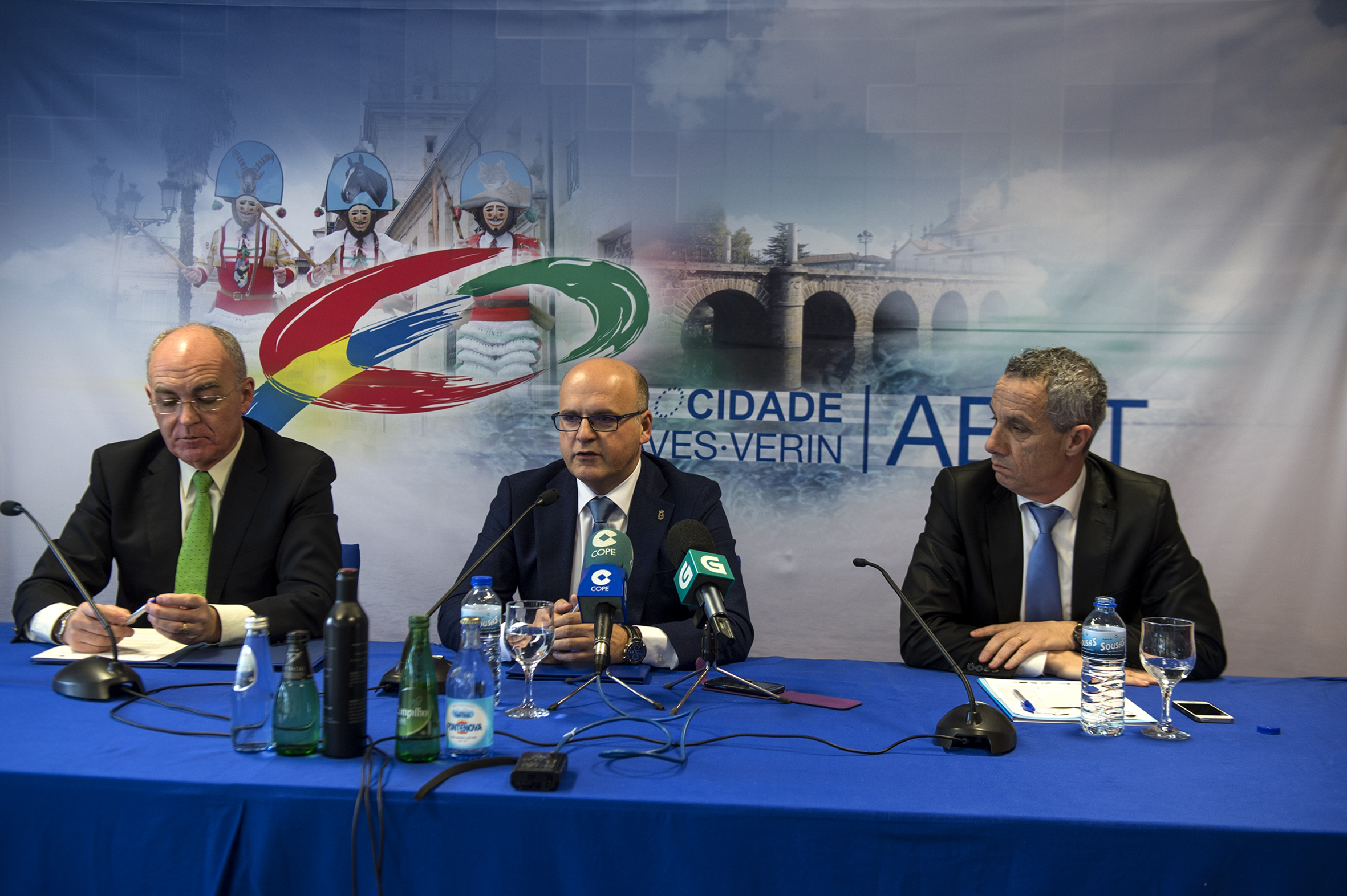 Sinatura convenio para o Programa de Termalismo Transfronteirizo Chaves-Verín. Participan Manuel Baltar (Presidente Deputación Ourense), Juan Manuel Jimenez (Alcalde de Verin) e Paulo Alves (Representante da Cámara de Chaves).