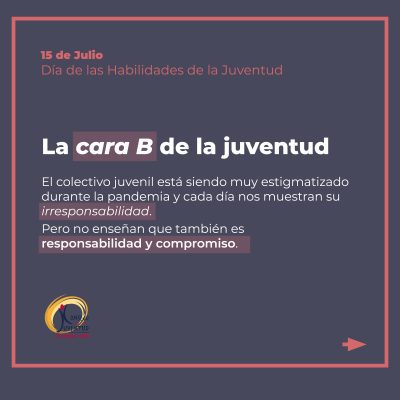 Hoy 15 de julio, Día Mundial de las Habilidades de la Juventud, queremos visibilizar los esfuerzos de este colectivo en crear una sociedad más inclusiva, sostenible y justa, y reivindicamos que se visibilice esa “cara b” de la juventud que nadie muestra, la cara solidaria y comprometida, como lo son las miles de personas voluntarias que se han ofrecido para hacer la compra a grupos de riesgo, familias con hijos e hijas a cargo o a personas con discapacidad, jóvenes universitarios y universitarias que han ayudado a todo el alumnado a preparar la selectividad, la red de makers jóvenes que han creado de manera voluntaria mascarillas, viseras y respiradores en tiempo récord para ponerlas a disposición de los hospitales, entre otras muchas iniciativas; así como también reivindicamos la necesidad de impulsar espacios de ocio alternativo saludables.