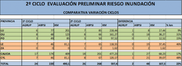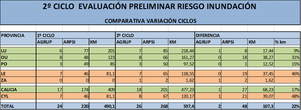- 107 km de peligrosidad y riesgo de inundación nuevos, resultando un total de 597,40 km en 267 áreas detectadas en este 2º ciclo