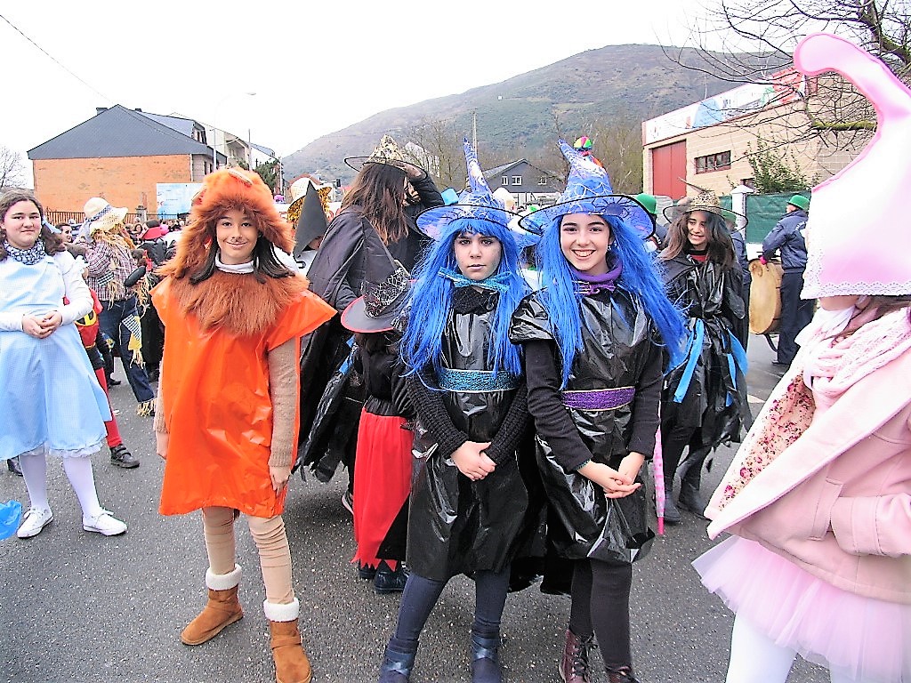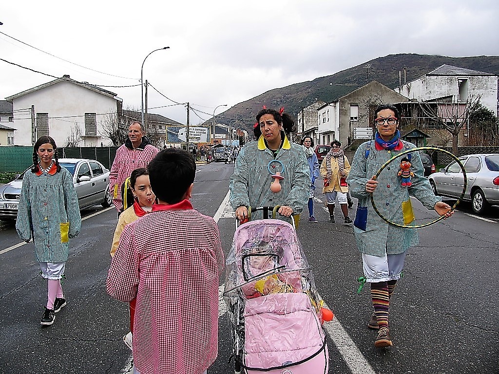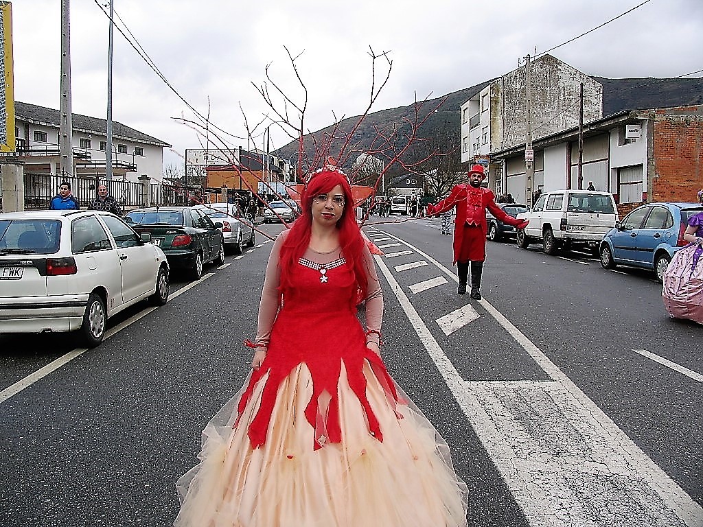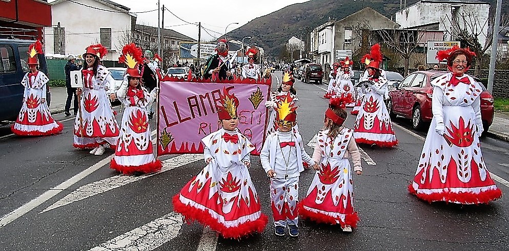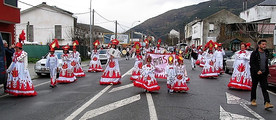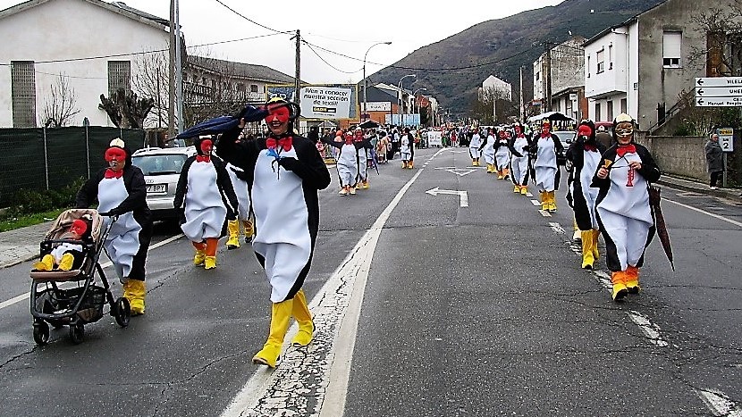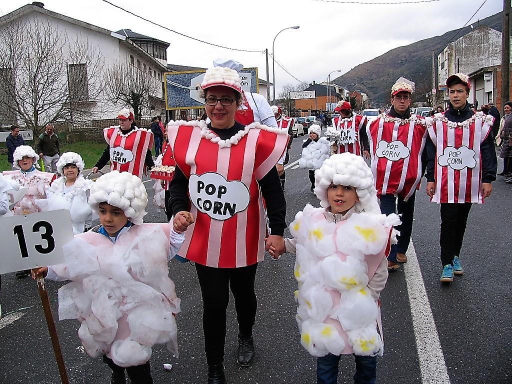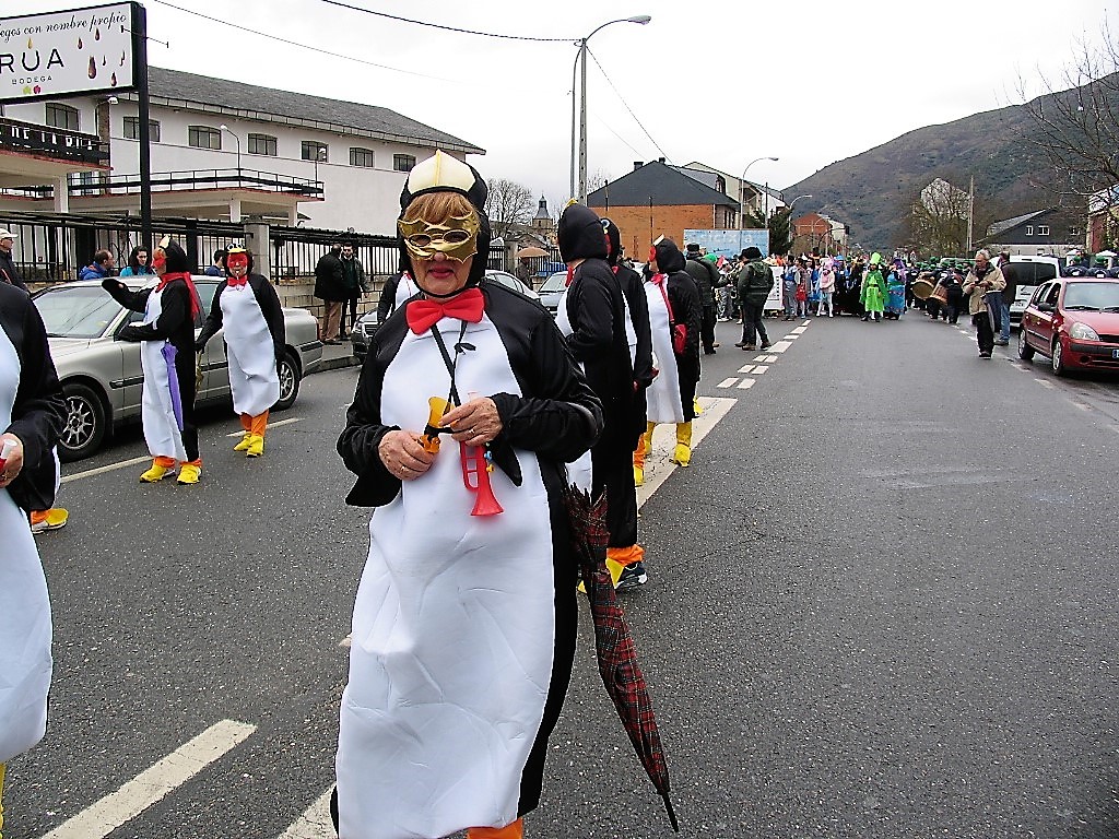 El martes de carnaval se vivió con intensidad en A Rúa de Valdeorras. El amago de lluvia no desanimó y las comparsas tiñeron de colorido las calles. Los miembros de las mismas se esmeraron con disfraces de lo más variopinto: llamas de fuego de la comparsa A Ruada, palomitas de maíz, militares con cabra incluida, vistosos trajes de todos los colores, jóvenes, niños…