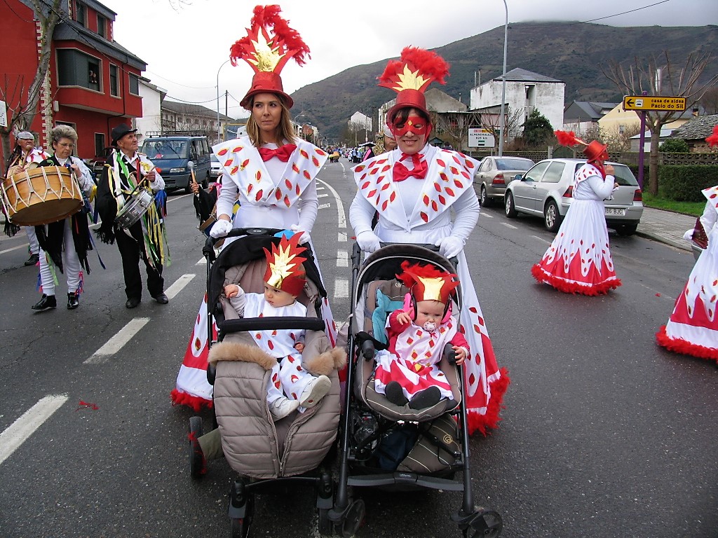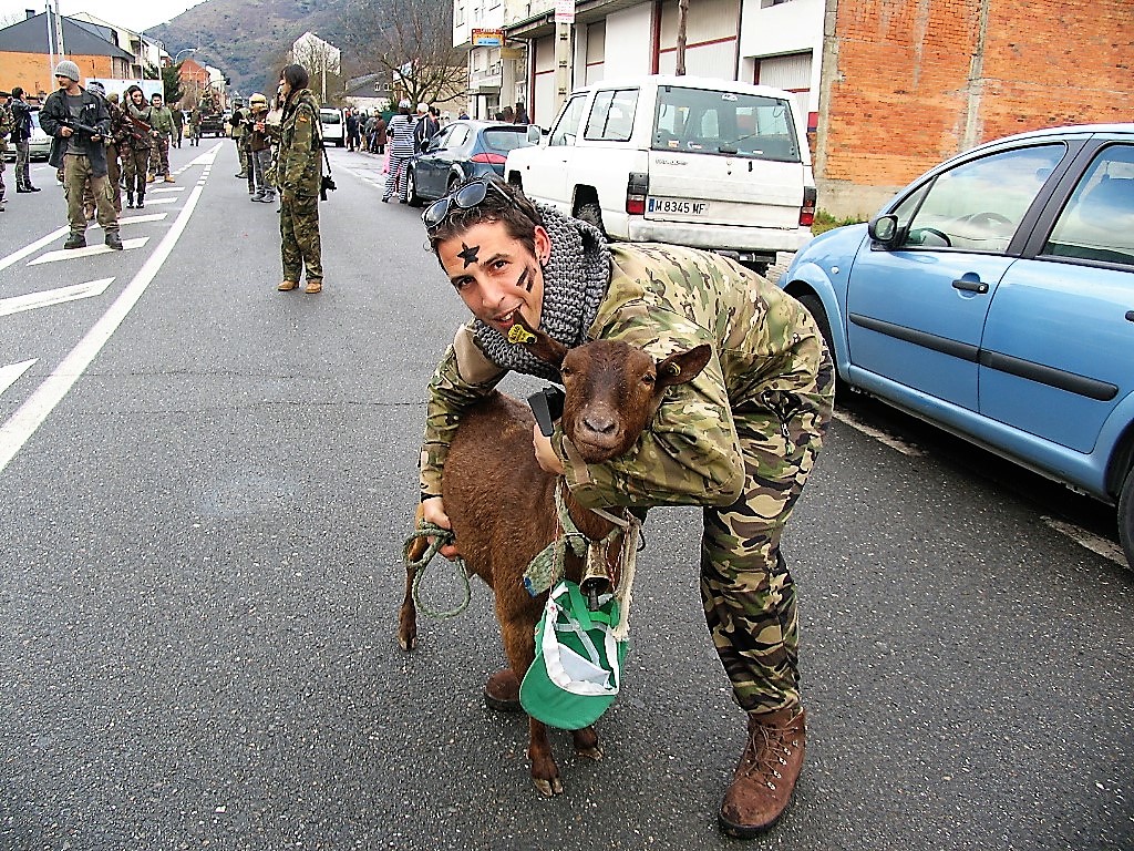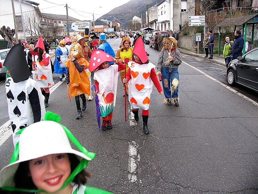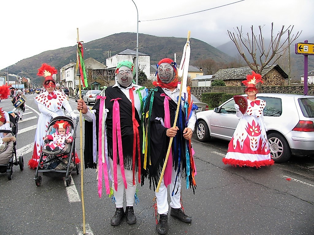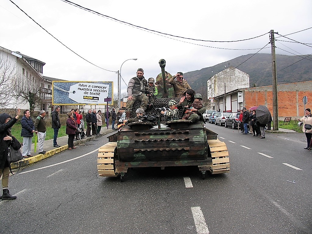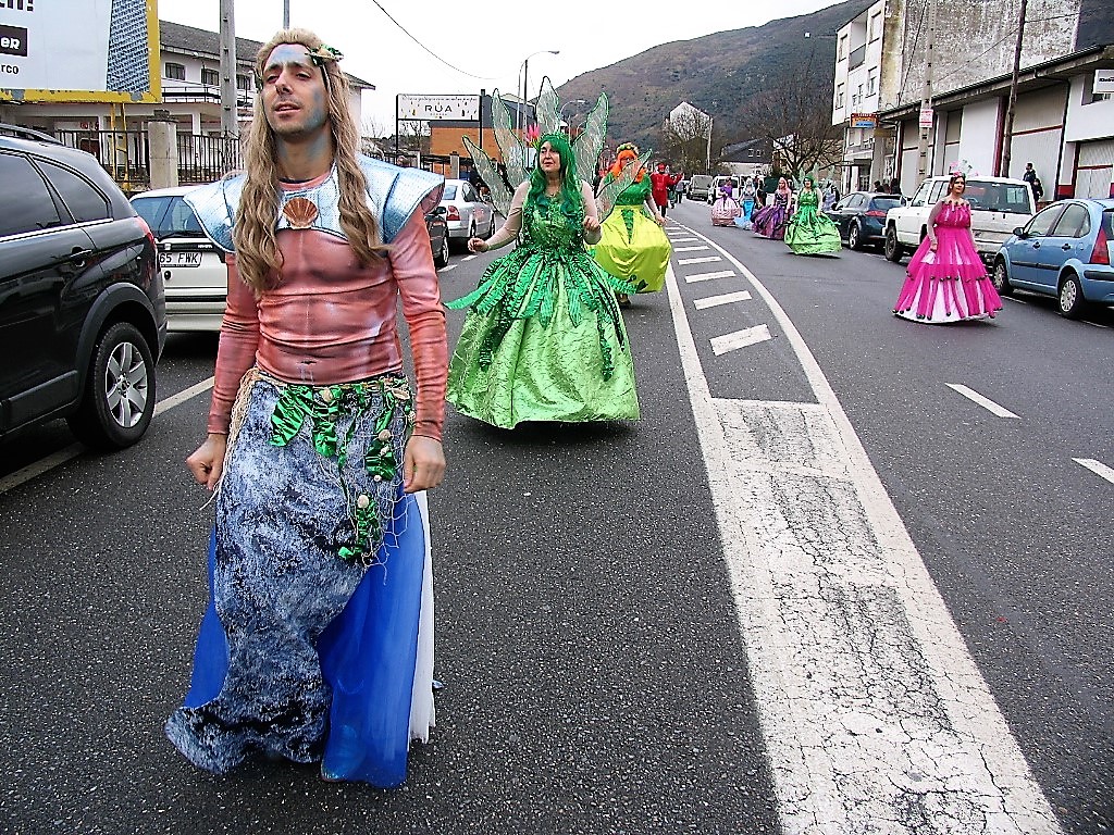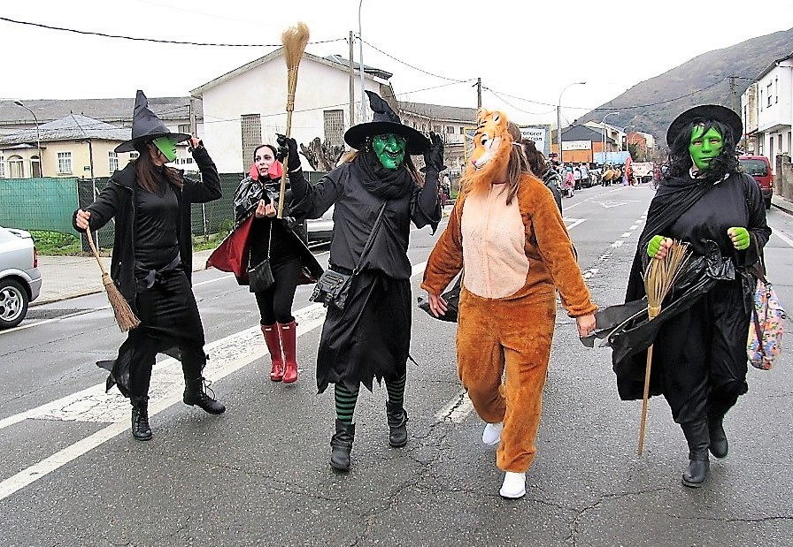El martes de carnaval se vivió con intensidad en A Rúa de Valdeorras. El amago de lluvia no desanimó y las comparsas tiñeron de colorido las calles. Los miembros de las mismas se esmeraron con disfraces de lo más variopinto: llamas de fuego de la comparsa A Ruada, palomitas de maíz, militares con cabra incluida, vistosos trajes de todos los colores, jóvenes, niños…
