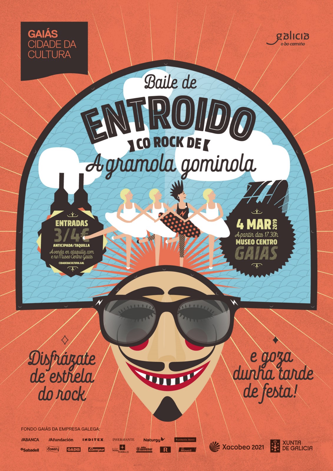 La Cidade da Cultura de Galicia invita a los amantes del entroido a disfrazarse de rockeras y rockeros y disfrutar de un baile especial con la música en directo de la banda infantil A Gramola Gominola, una fiesta para toda la familia que tendrá lugar el lunes 4 de marzo a las 17.30 horas en el Museo Centro Gaiás.