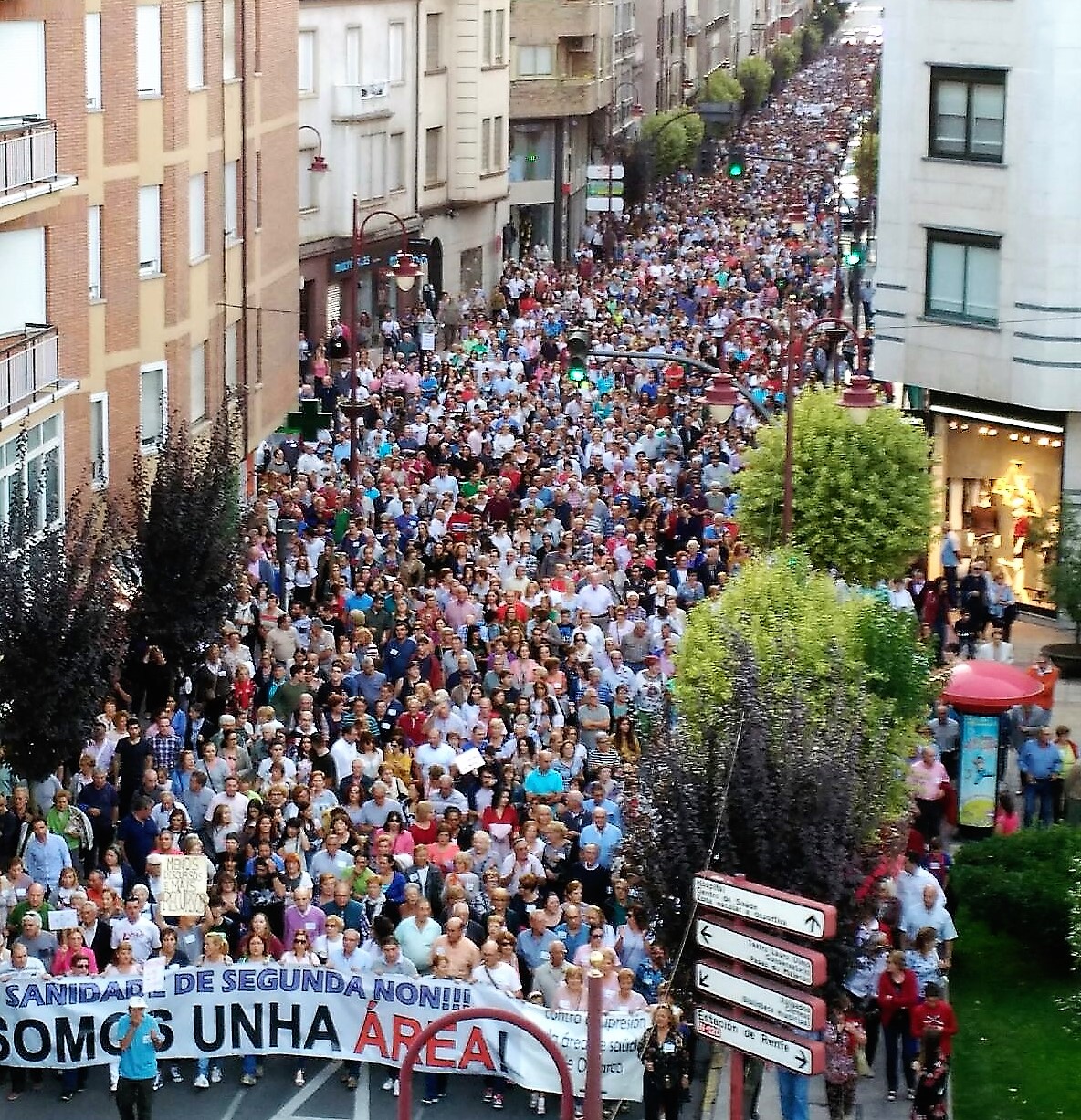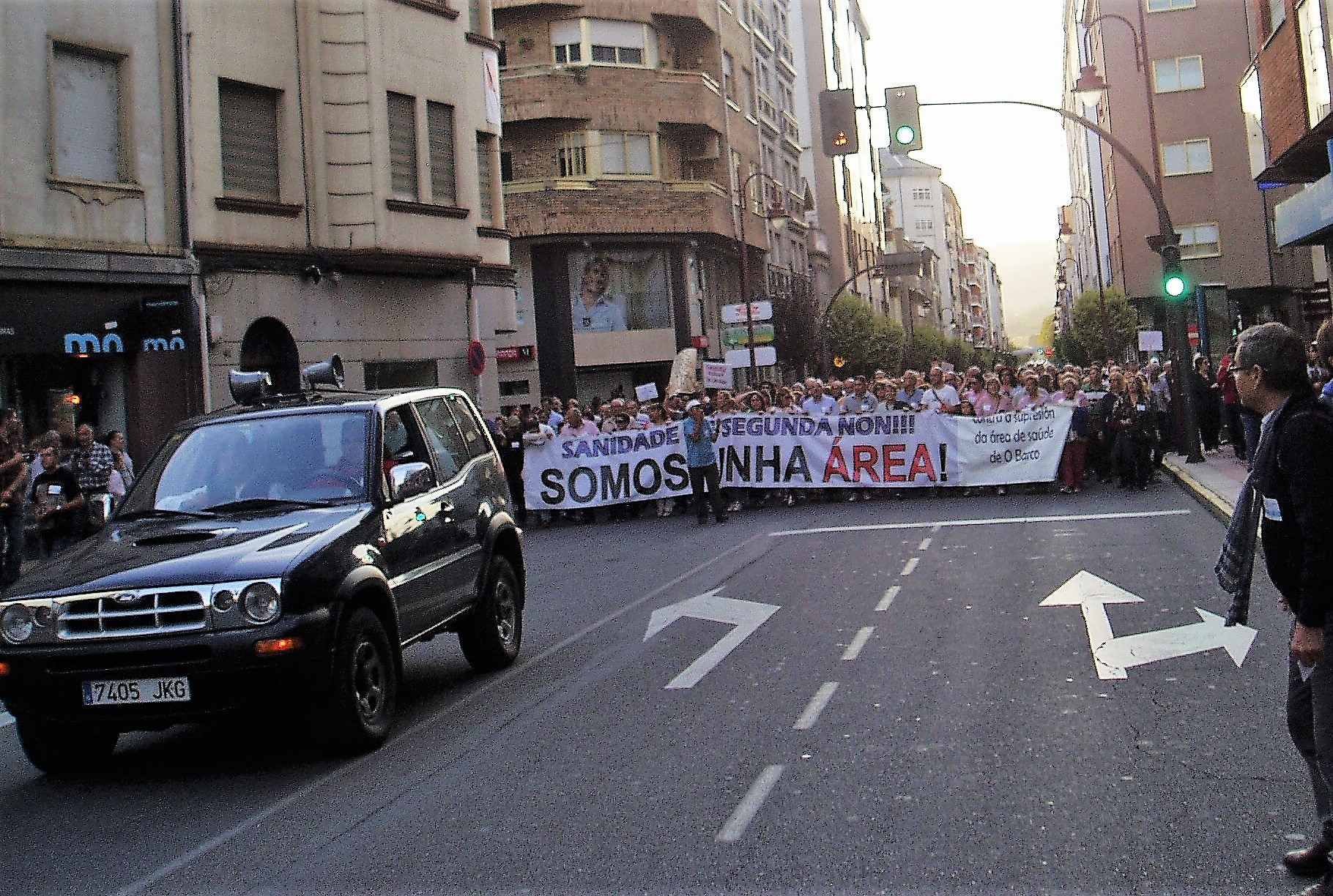 La manifestación arrancó del pabellón de Calabagueiros de O Barco, pasando por delante del centro de salud y el Hospital y llegó hasta la Plaza del Concello, en la que se dio lectura a un manifiesto muy claro que expresó el rechazo al anteproyecto que modifica la Lei 8/2008 de Saúde de Galicia; se exigió su retirada y propuso la creación de un grupo de trabajo para abordar el cambio de la citada Ley: “No aceptamos ser ciudadanos de segunda, tampoco queremos una sanidad de segunda. Somos un área”.