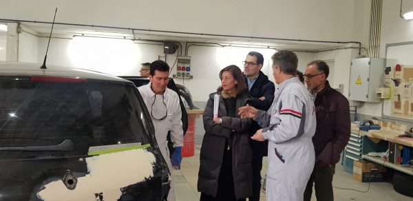 La delegada territorial de la Xunta de Galicia en Ourense, Marisol Díaz Mouteira, visitó hoy la empresa ‘Talleres José María’ en la que se está desarrollando un curso AFD, acciones formativas para personas desempleadas, de la especialidad Pintura de vehículos.