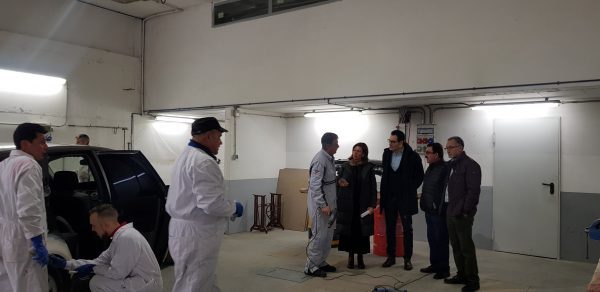 • La delegada territorial de la Xunta en Ourense comprobó el desarrollo de un curso para desempleados en pintura de vehículos que se imparte en un taller de San Cibrao das Viñas