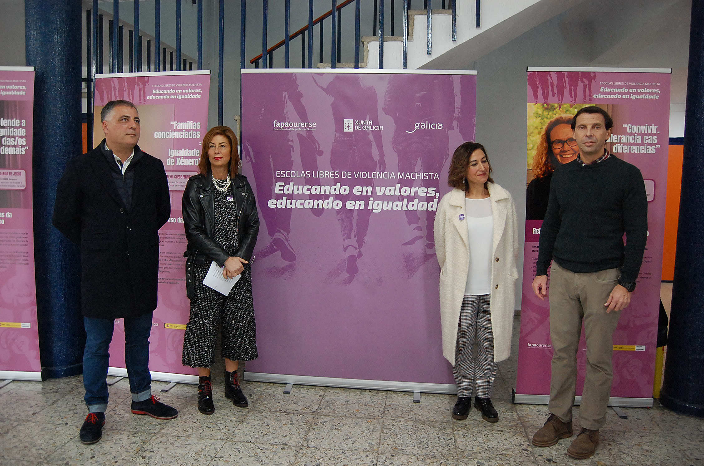 Precisamente hoy se presentó uno de los proyectos beneficiados, promovido por la Federación provincial de Anpas de Ourense (FAPA) bajo el título Escuelas libres de Violencia machista: Educando en valores, educando en igualdad. El proyecto incluye una serie de entrevistas en formato Podcast realizadas a personalidades de la sociedad ourensana y profesionales involucrados en la eliminación de la discriminación sexual y del machismo, que a FAPA Ourense comparte a través de su web y redes sociales; exposiciones, vídeos promocionales, talleres formativos y la realización de una encuesta entre familias y alumnado de 12 centros públicos de la provincia para conocer las actitudes y valores respeto de las relaciones de género en su entorno.