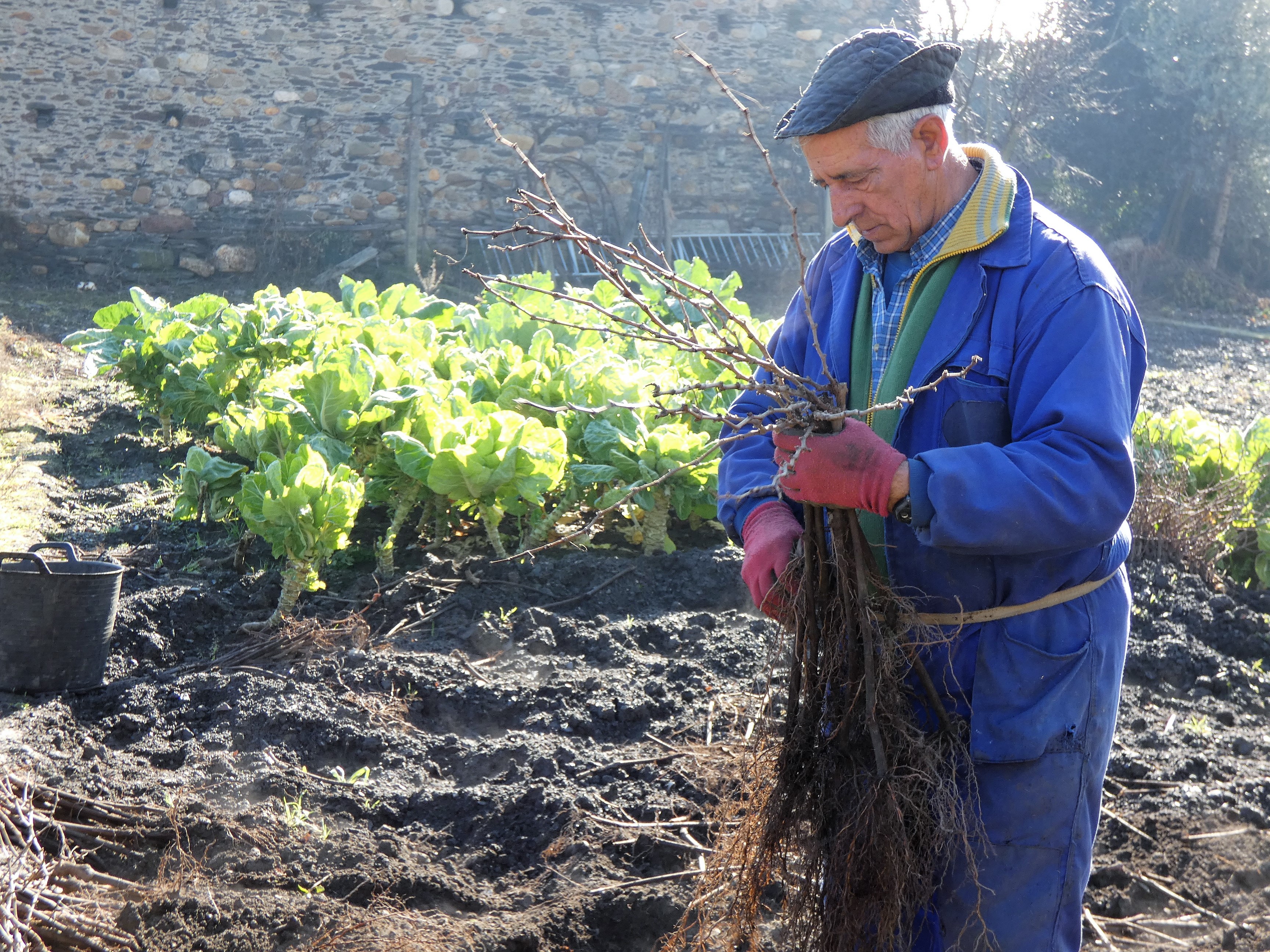 Jesús Fernández Macías es un viticultor de A Rúa que sigue realizando la injerta de la vid tradicional, a mano, para hacer injertos de todo tipo de variedades que, precisamente estos días, ya está arrancando para la replantación de sus viñedos.