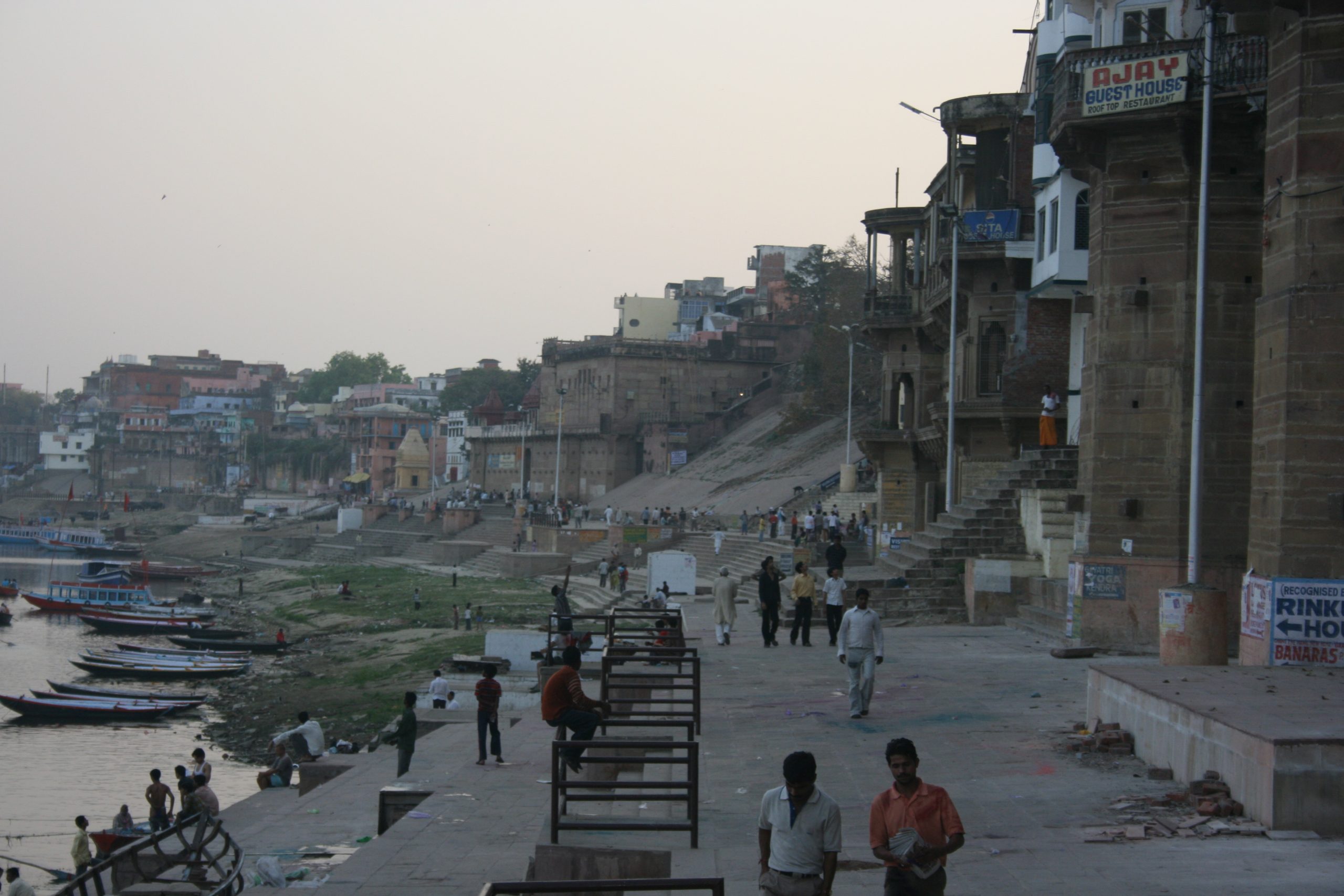 Dejamos atrás nuestros ojos occidentales y abrimos nuestro disco duro a otras percepciones de la existencia. En Benarés las riberas del río están abarrotadas de elevados pabellones, palacios, templos de los siglos XVIII y XIX flanqueados por una interminable hilera de escalinatas: los ghats que se extienden por toda la orilla.