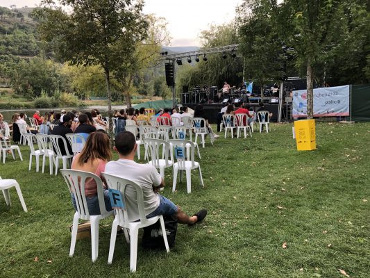 Durante cuatro horas, la música reinó en el recinto fluvial, y el público, que se mantuvo sentado durante las actuaciones cumpliendo con el protocolo Covid, bailó desde sus sillas, brindó con un vino de la Denominación de Origen Valdeorras y disfrutó de nuestro entorno natural único, en pleno Camiño de Inverno.