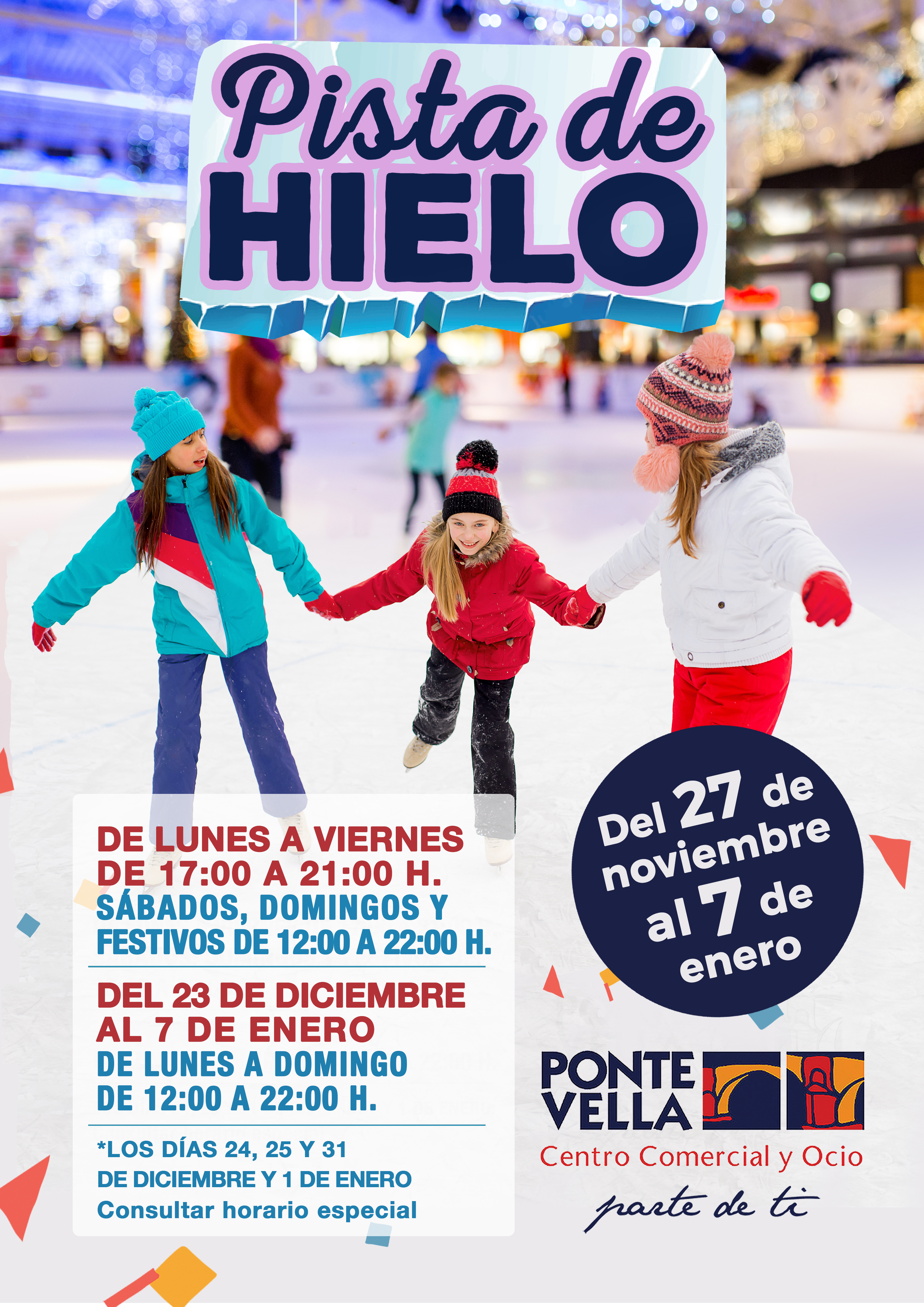 La fantástica Pista de Hielo instalada en las terrazas de Ponte Vella Centro Comercial y Ocio cuenta con 300 metros cuadrados de auténtico hielo y con atractivos efectos de luz led, música, humo y otras muchas novedades y mejoras.