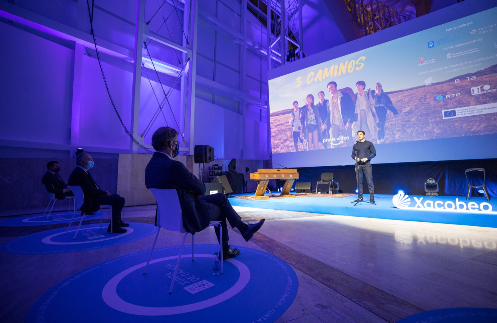El presidente del Gobierno gallego, Alberto Núñez Feijóo, se refirió a la serie 3 Caminos, la primera serie internacional sobre la ruta xacobea y la gran producción audiovisual del Xacobeo 2021-2022, como