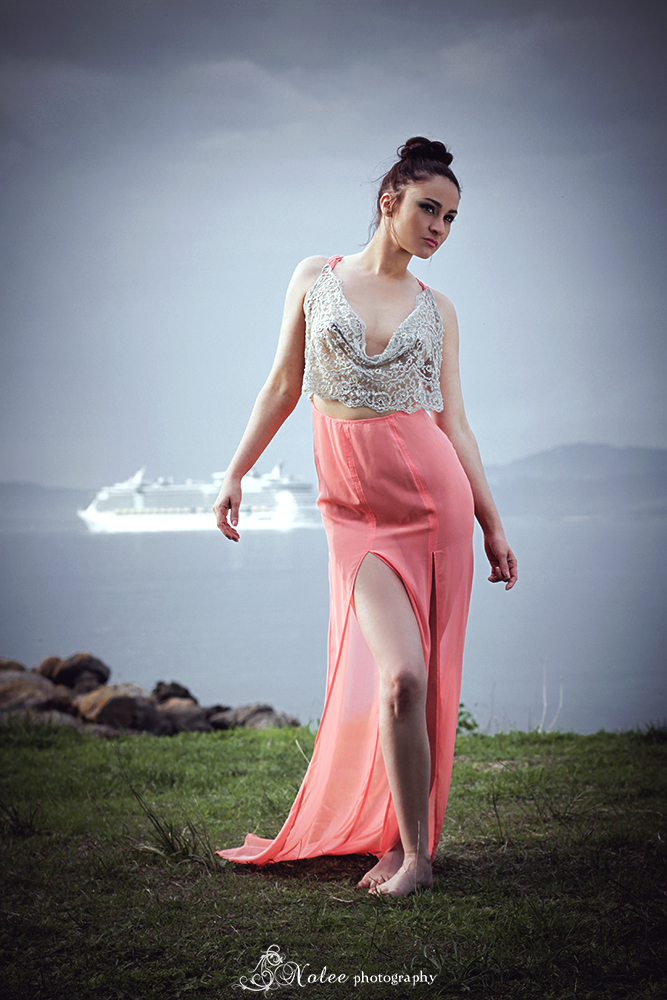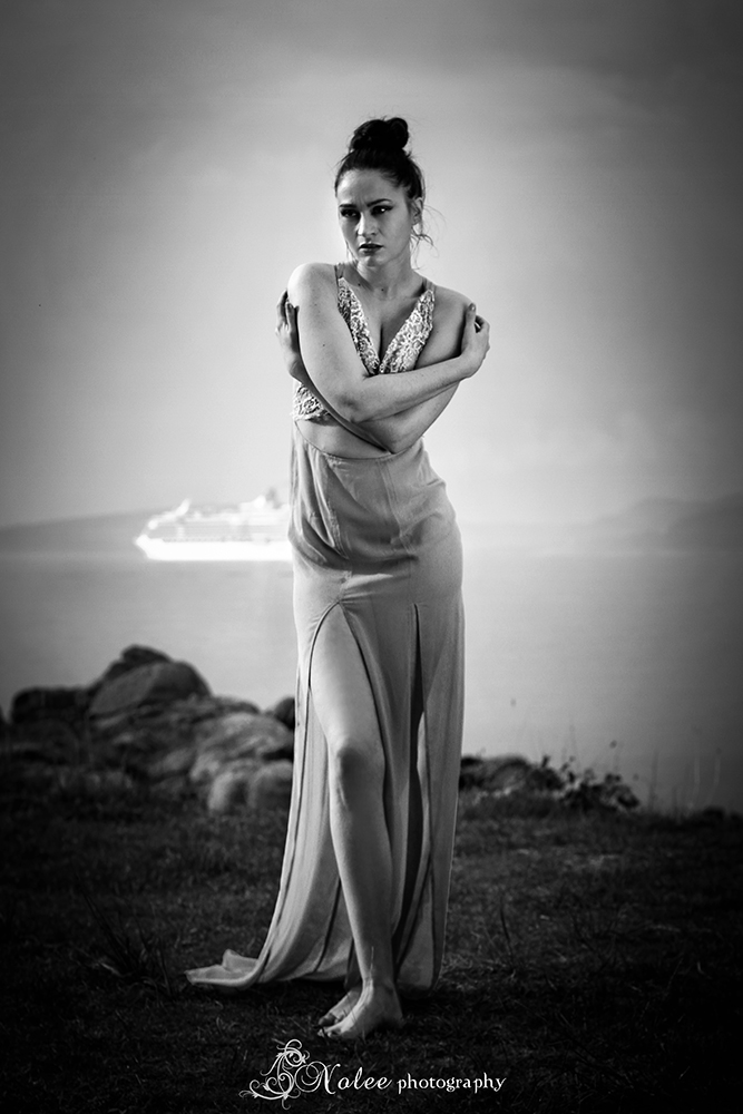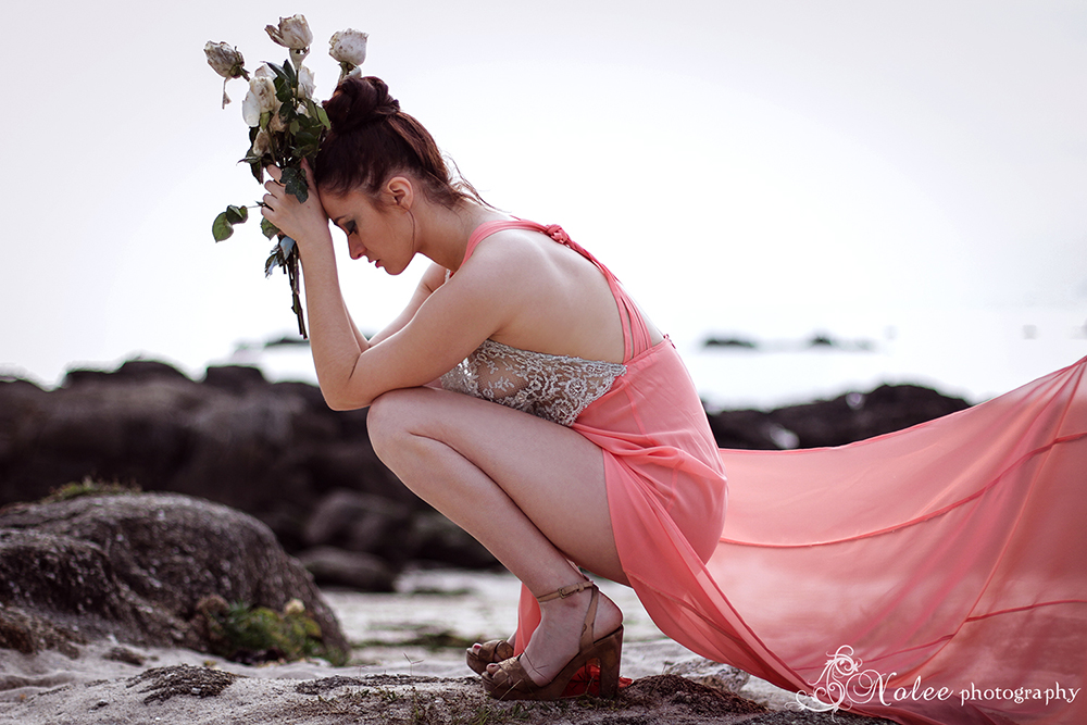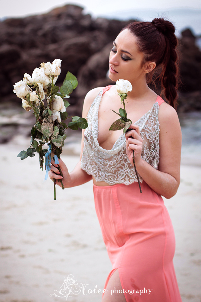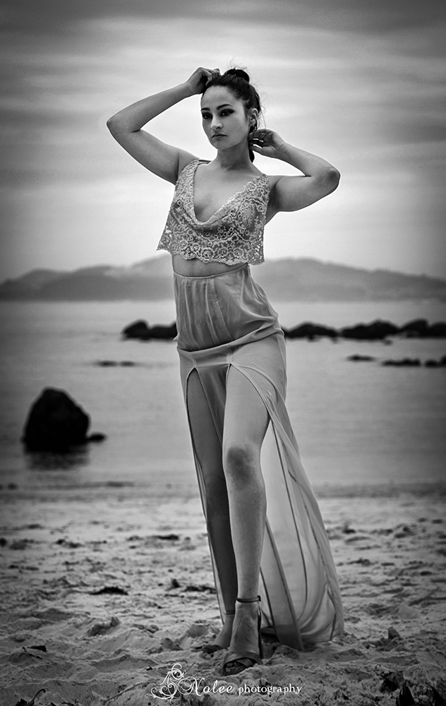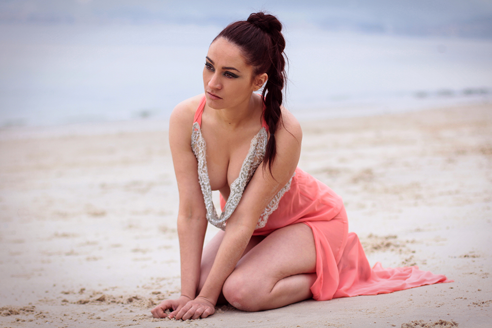 Esta pieza esconde detrás una bella historia inspirada en el mar y en la leyenda de las sirenas. Para encarnar la esencia de Coral, tuvimos el enorme placer de poder contar con la bellísima cantante y modelo María Folgueira, una belleza de larga melena negra y piernas interminables que luciendo esta preciosa obra de arte de la moda hizo gala de una gran versatilidad interpretativa enfundada en esta hermosa pieza de seda y encaje, en un paraje inigualable: una playa desierta situada en la costa sur de las Rías Baixas.
