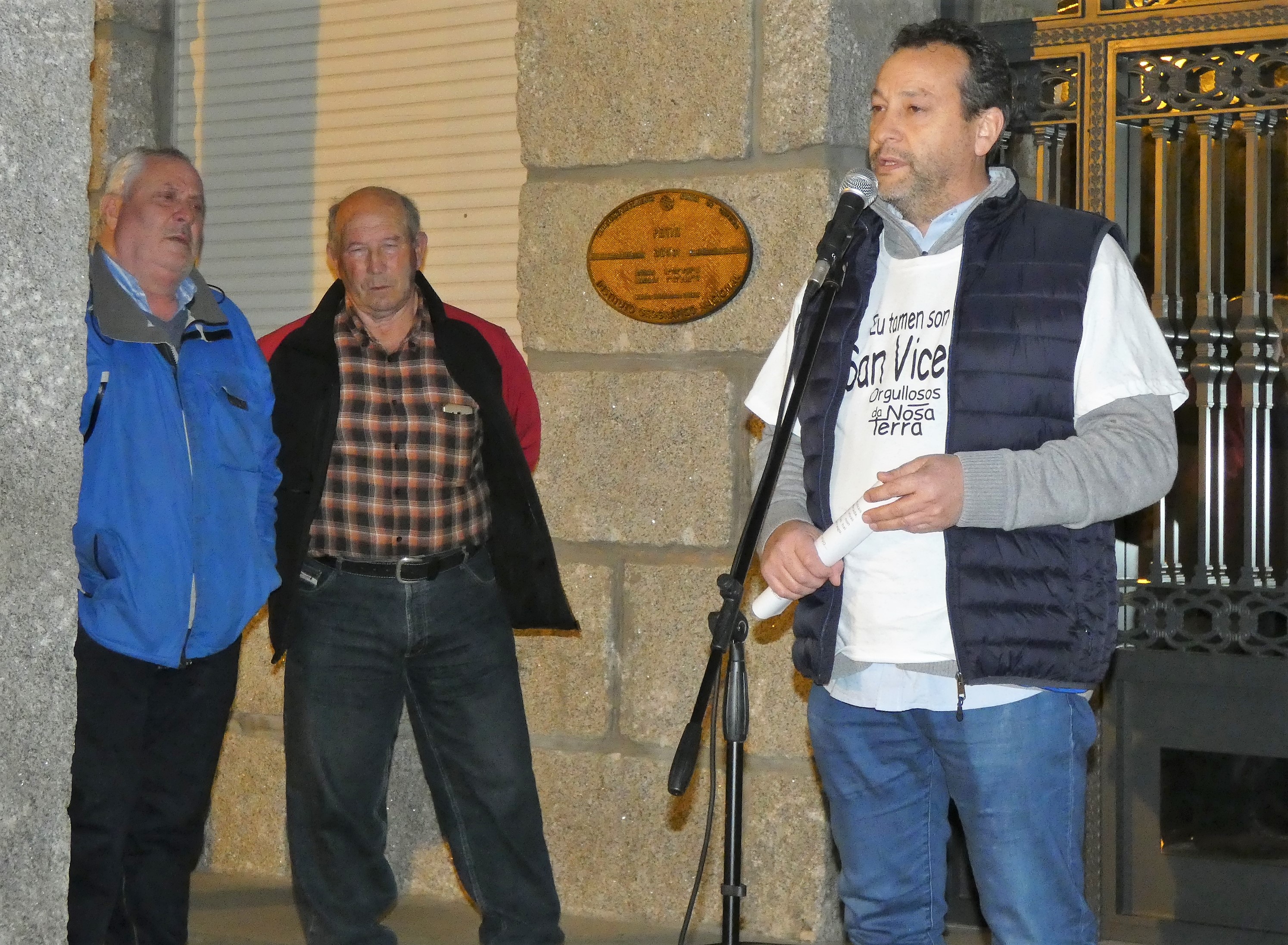 Miguel Bautista fue el encargado de abrir el acto, que comenzó frente a la Casa Consistorial de Petín, para proseguir por las calles hasta la plaza del pueblo. “Desde el Concello de Petín, nuestra máxima solidaridad con San Vicente para que de una vez por todas arreglen la carretera”, dijo Bautista.