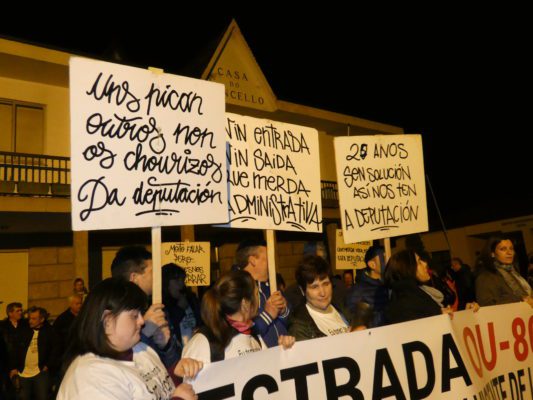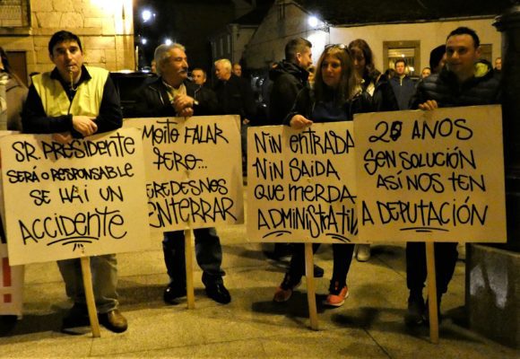 A escasas horas del encuentro, los vecinos de San Vicente y Álvarez Barreiro protagonizaron la noche del martes una concentración en Petín, arropada por el alcalde de este municipio y diputado socialista, Miguel Bautista Carballo, y por otros representantes locales como el regidor de A Rúa, Luis Fernández Gudiña.