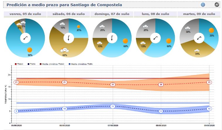 - Una de las modificaciones afecta a la predicción a medio plazo para trasladar a los usuarios datos sobre las probabilidades de tiempo seco, nuboso o lluvioso