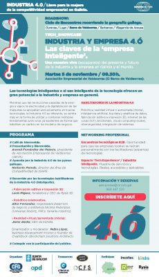 ‘Industria 4.0. Llave para la mejora de la competitividad de Galicia’ es una iniciativa qué contempla la organización y desarrollo de encuentros en distintos puntos de Galicia, con la finalidad de concienciar, reflexionar, debatir, compartir experiencias y promover la colaboración entre empresas, administraciones, universidades, centros tecnológicos, clústeres, etc. El objetivo es … ¡adelantarnos al futuro que viene!