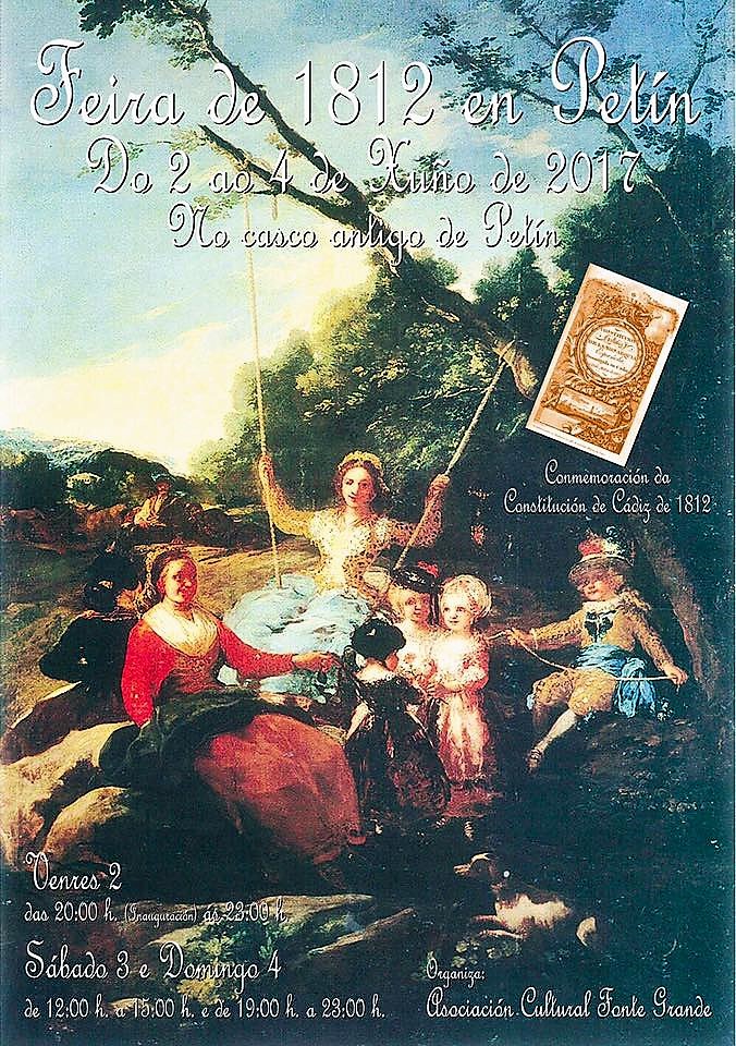 Petín celebra el próximo fin de semana, concretamente el 2, 3 y 4 de junio la sexta edición Feria de 1812, que nació en 2012 de la mano de la Asociación Cultural Fonte Grande. Este año incorpora novedades como el regreso de la Asociación Napoleónica de A Coruña, que realizará desfiles y representaciones de batallas en el transcurso de la feria; el debut el domingo por la mañana de la “Banda de Música Fonte Grande”, integrada por unos 30 vecinos de la localidad (muy similar a la Sonora de Petín); un tren infantil para que los niños sean transportados por las calles de la feria y la proyección de la final de la Champions con en la taberna de la organización para que el público no deje de asistir el sábado a cenar debido al fútbol.