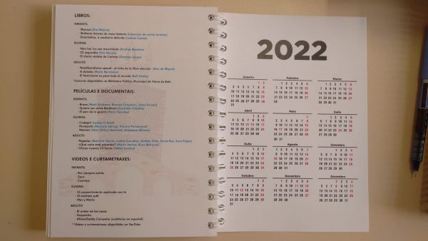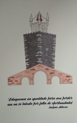 A libreta conta cun debuxo de Sonia Presas Rúa (“A Piolla”) e coa cita da escritora Josefina Aldecoa “Eduquemos na igualdade para non perder nin un só talento por falta de oportunidades